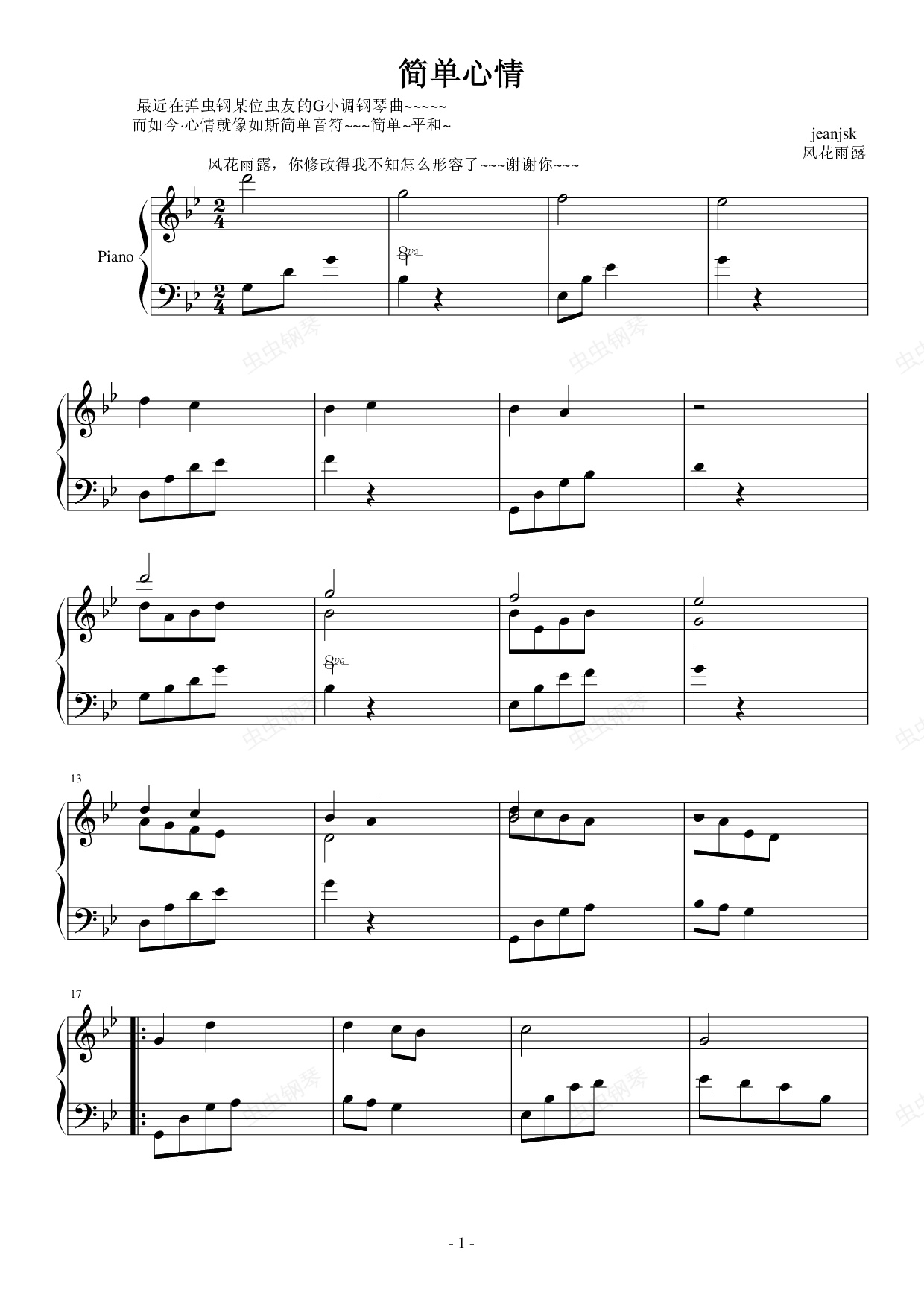 钢琴谱:简单心情