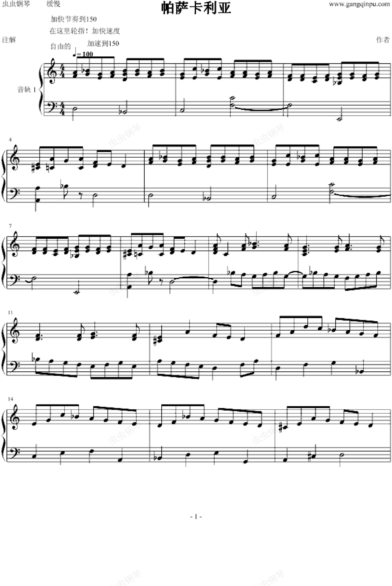 钢琴谱:帕萨卡利亚