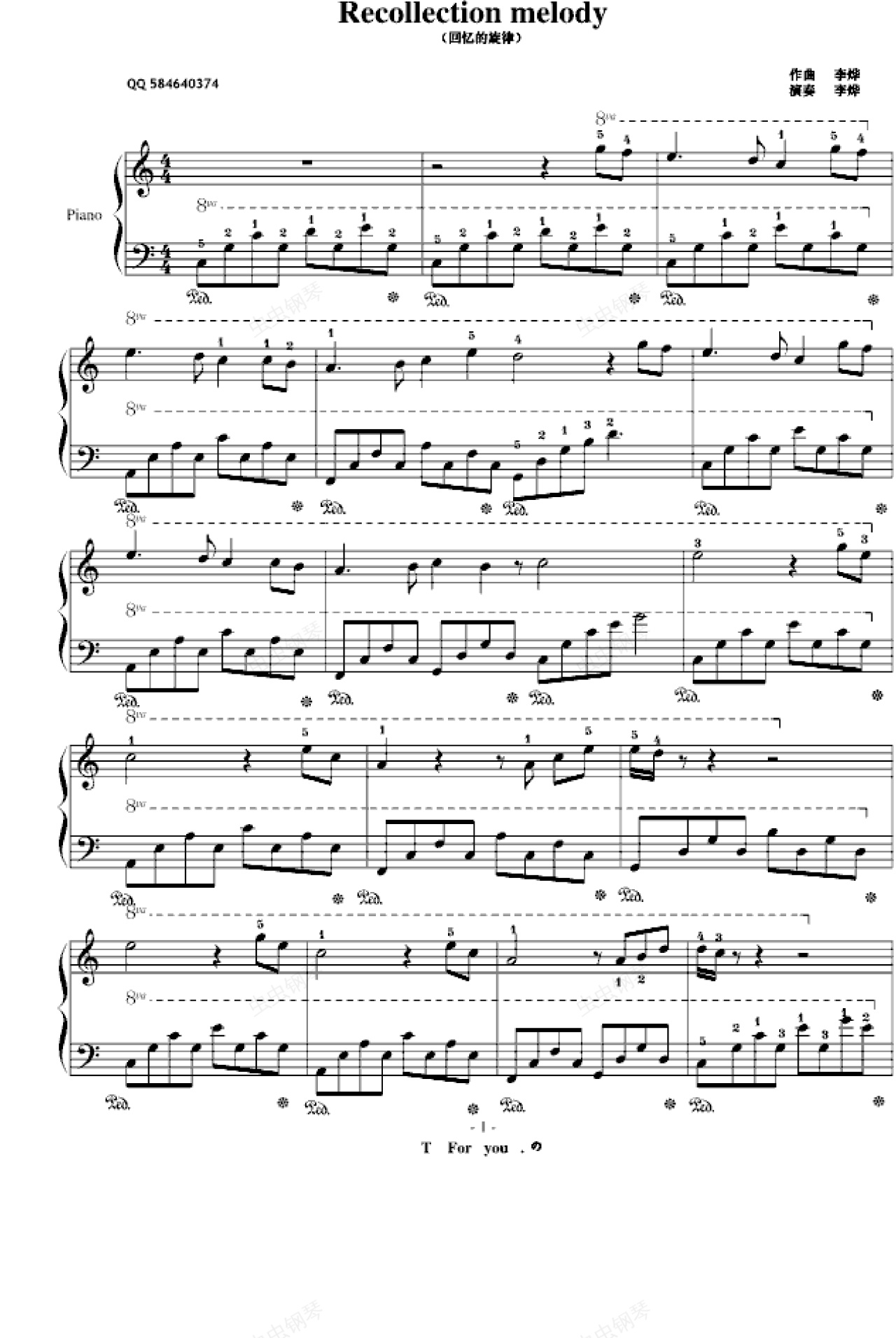钢琴谱:回忆