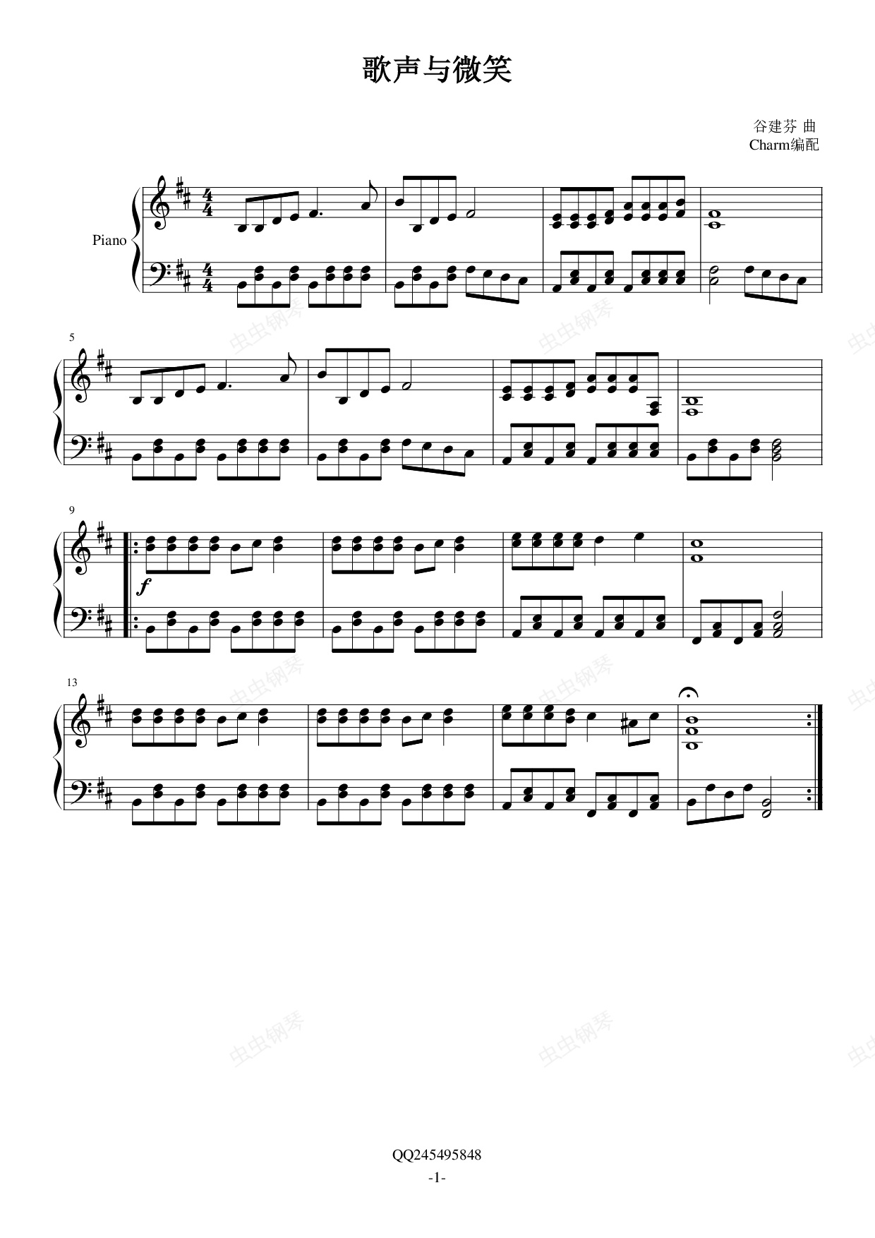 钢琴谱:歌声与微笑