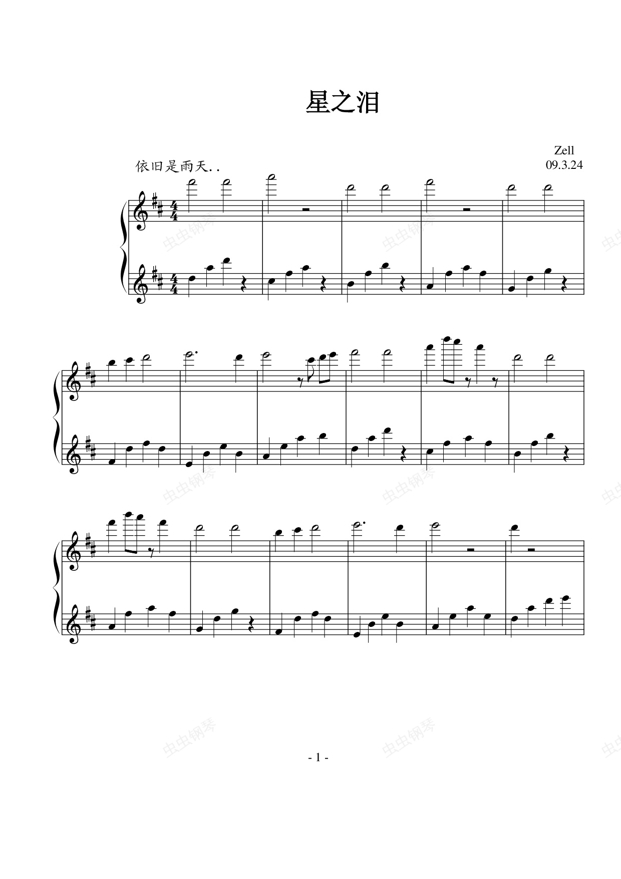 钢琴谱:星之泪