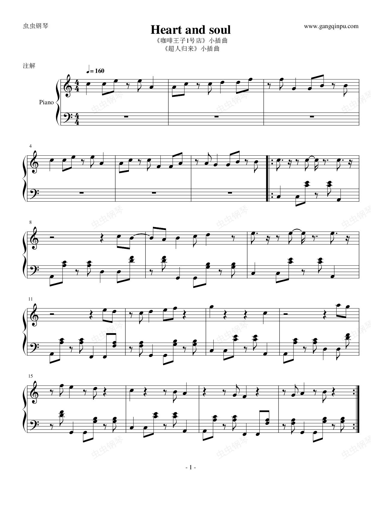 钢琴谱:(《咖啡王子1号店》《超人归来》插曲)—Heart and soul