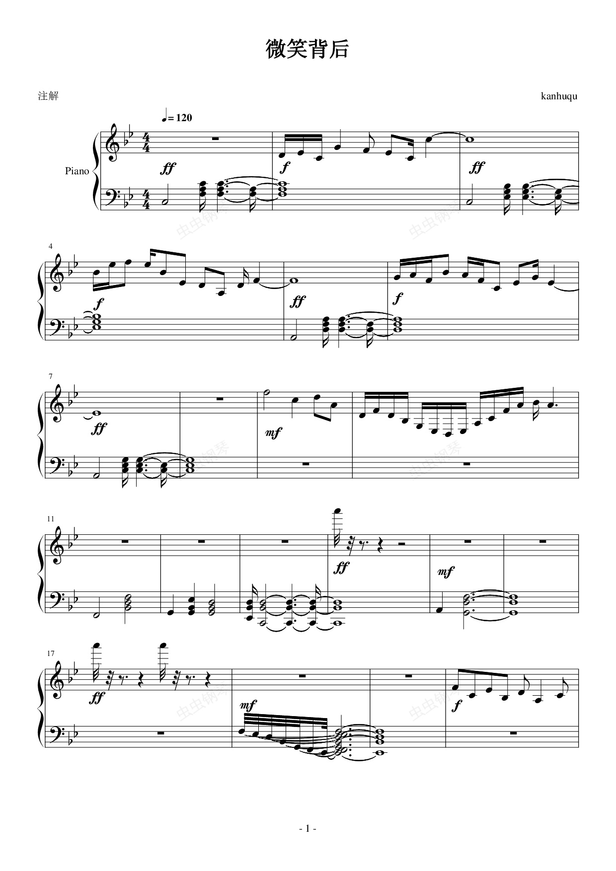 钢琴谱:微笑背后