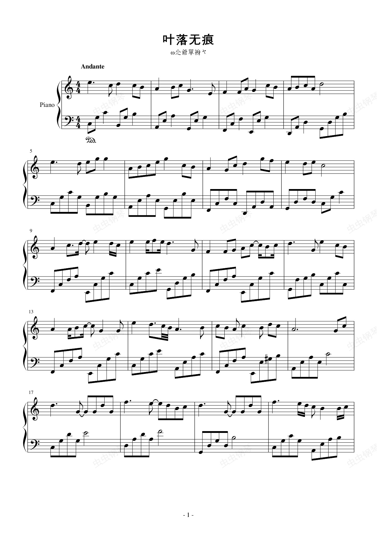 钢琴谱:落叶无痕