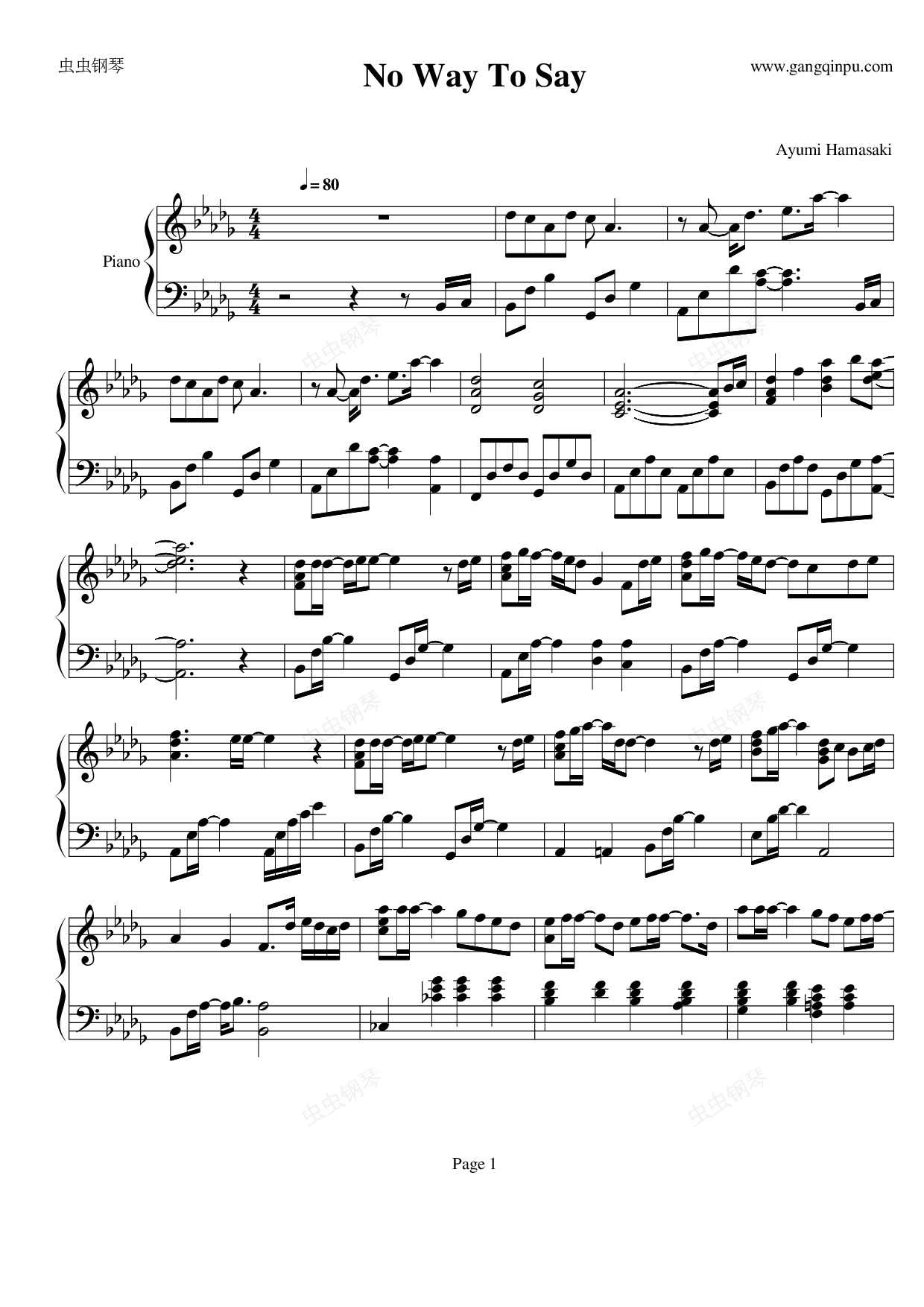 钢琴谱:No Way To Say