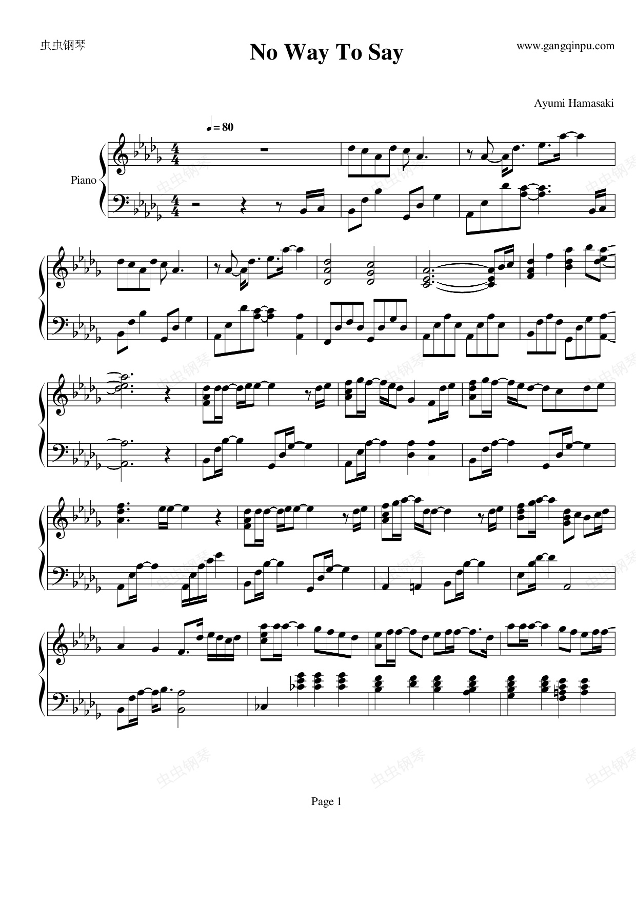 钢琴谱:No Way To Say