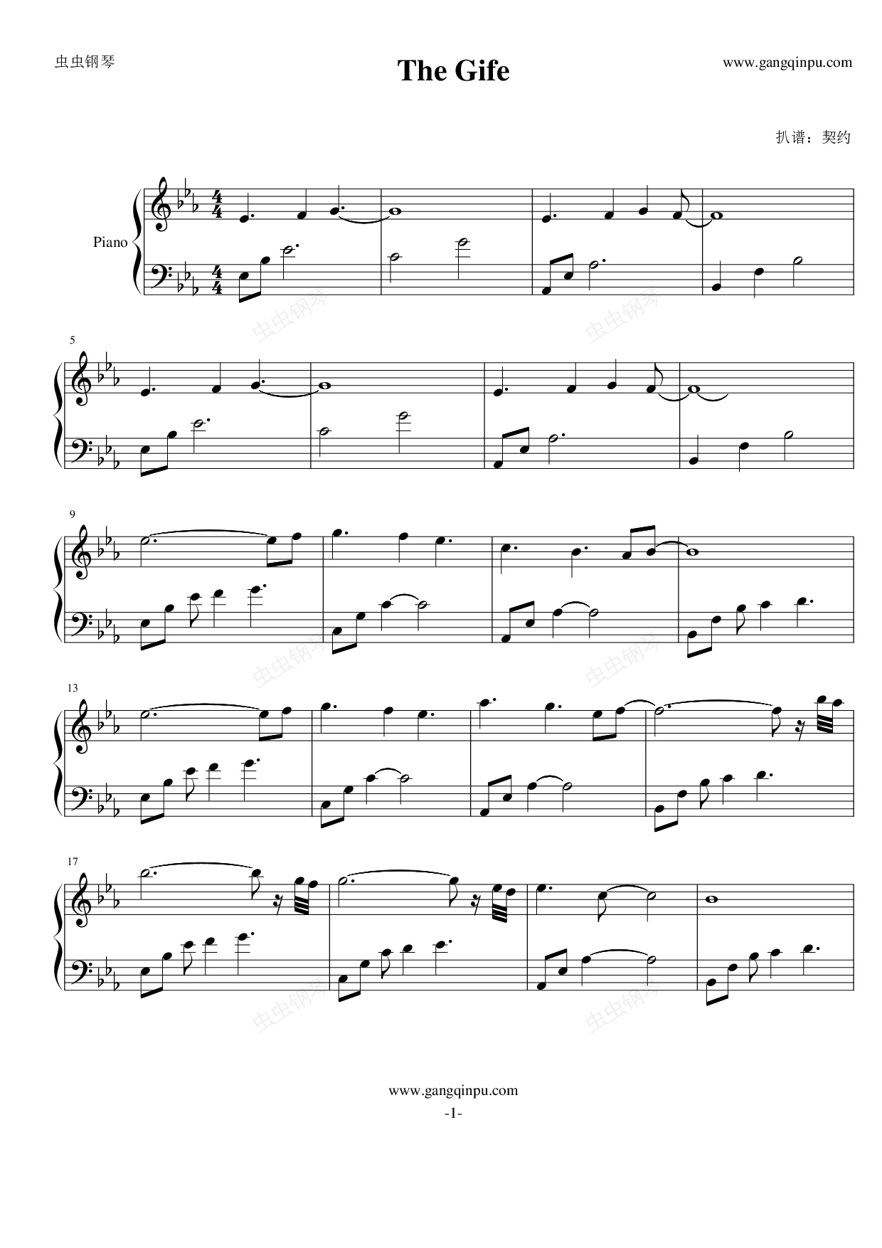 钢琴谱:The Gife