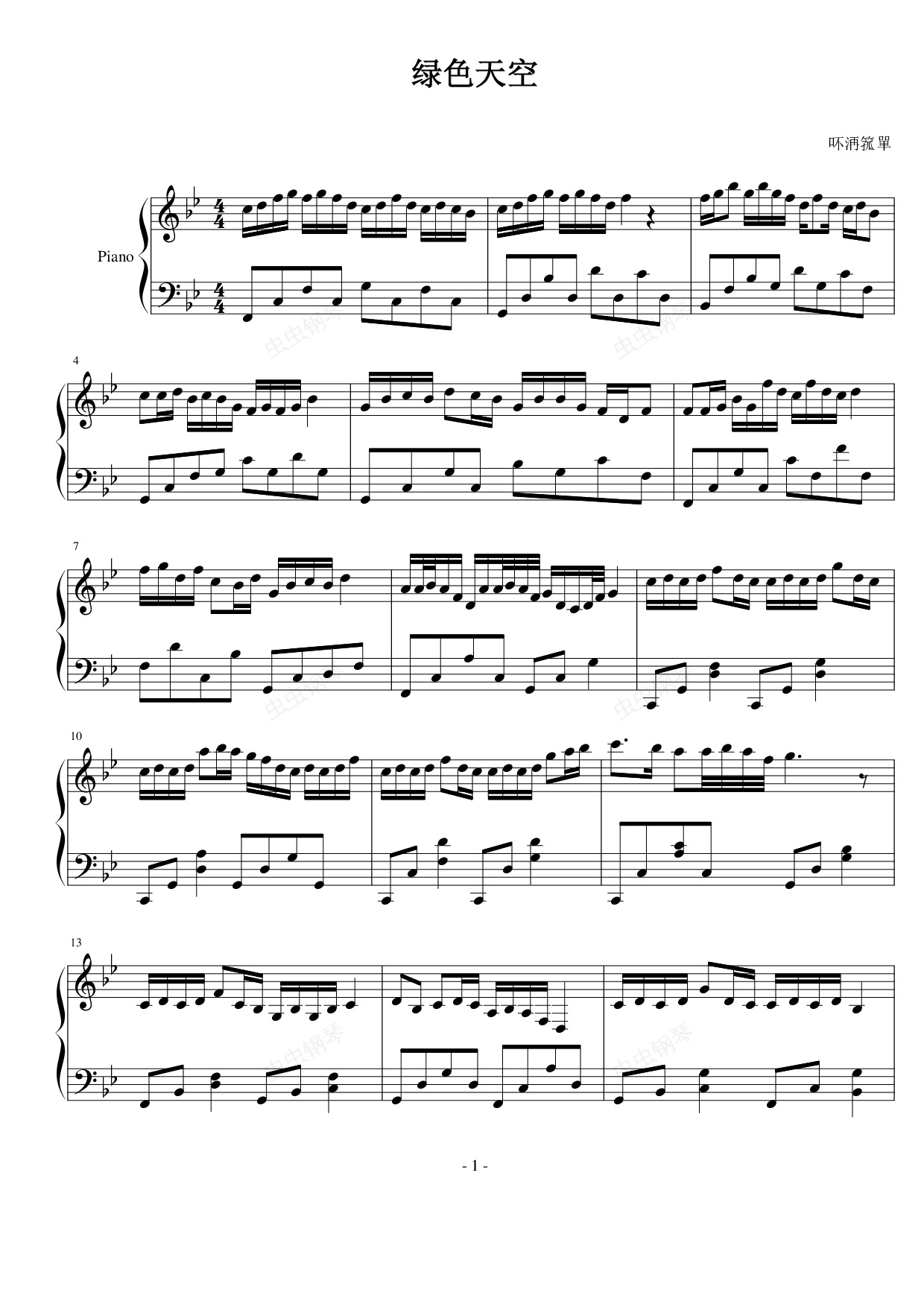 钢琴谱:绿色天空