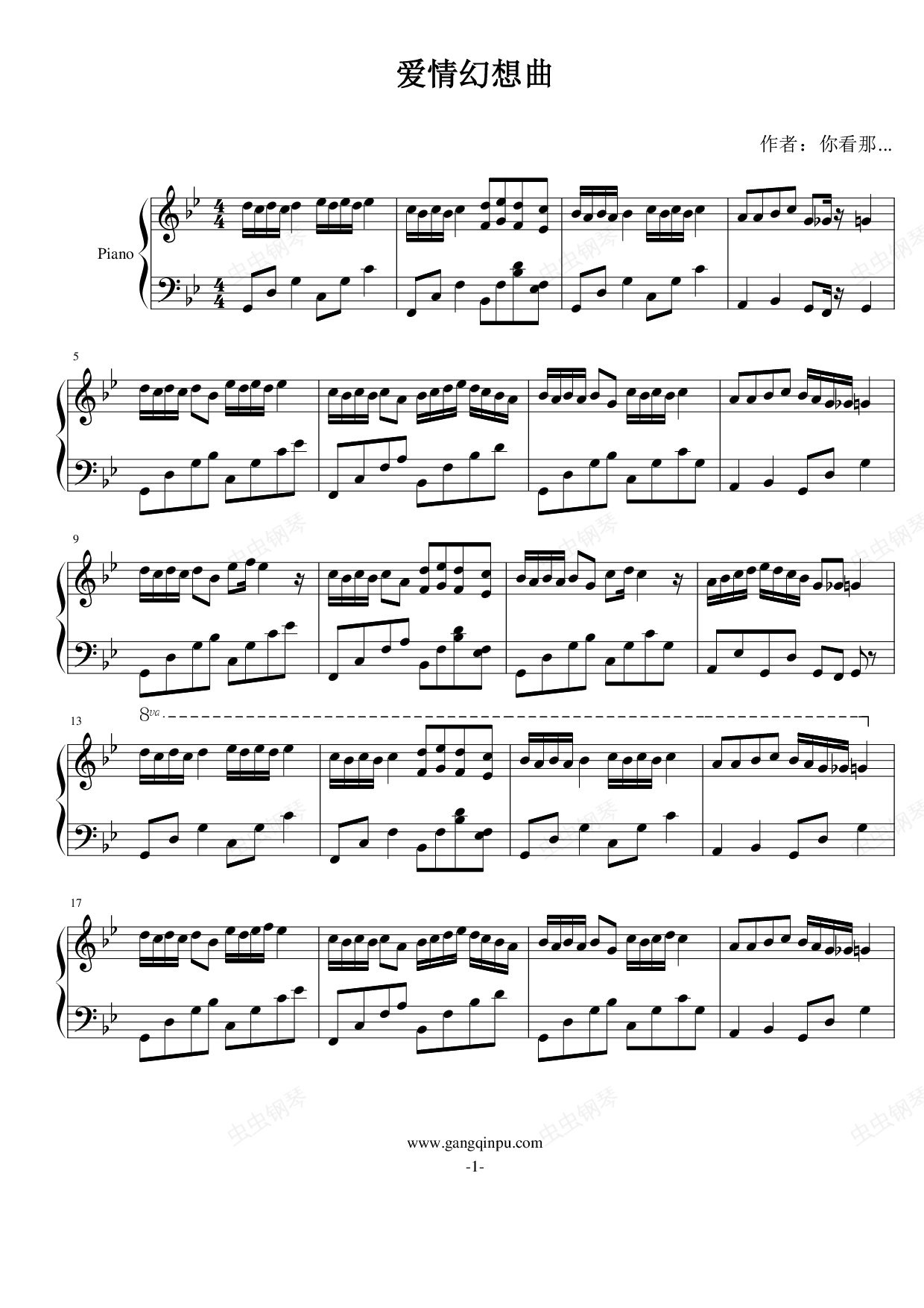 钢琴谱:爱情幻想曲
