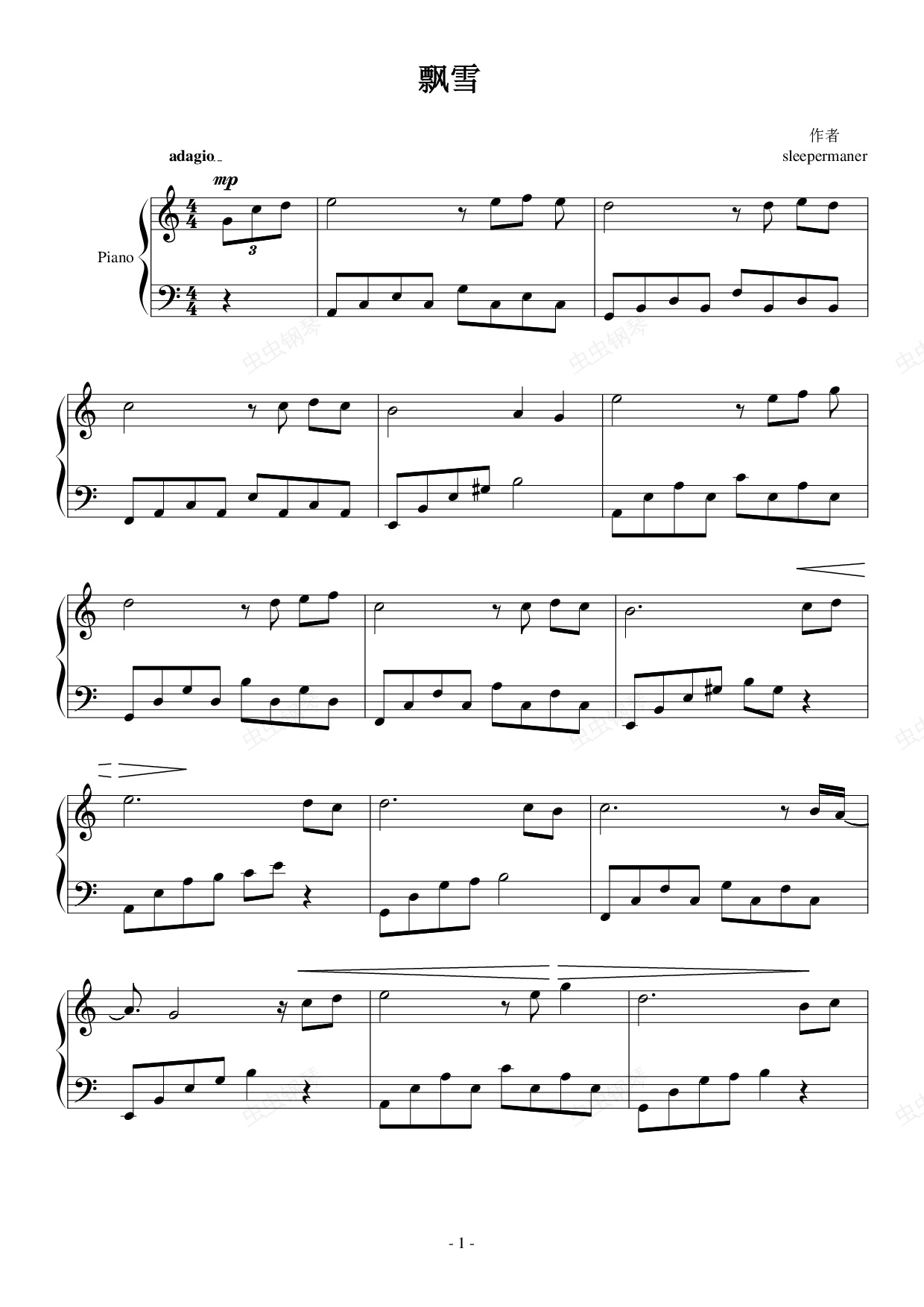 钢琴谱:又见雪花飘