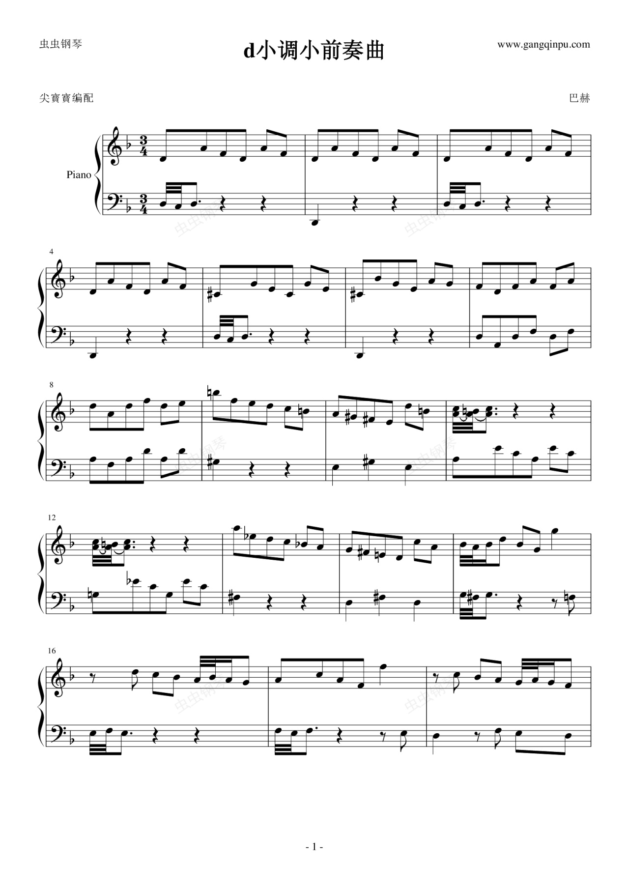 钢琴谱:d小调小前奏曲