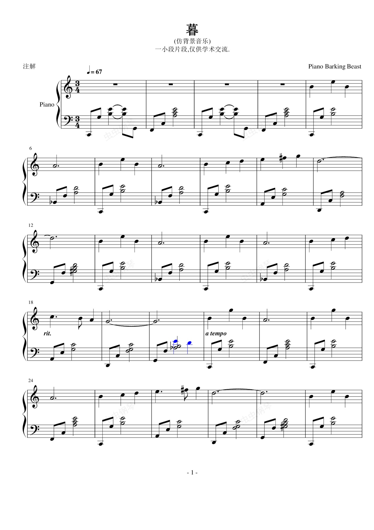 钢琴谱:暮