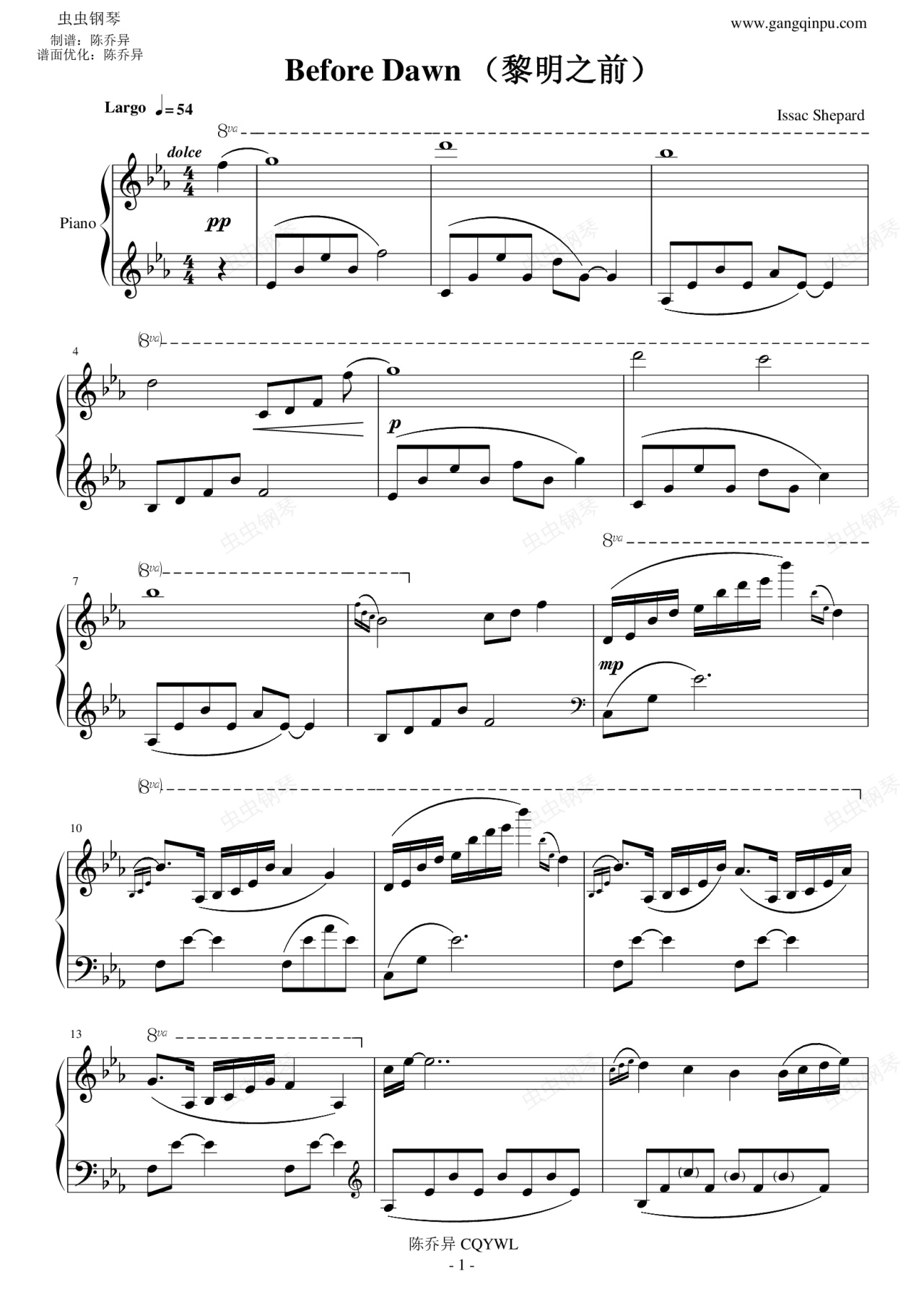 钢琴谱:Before Dawn(黎明之前)
