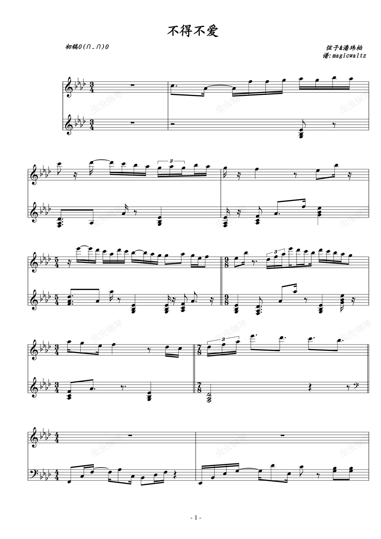 钢琴谱:不得不爱 独奏初稿