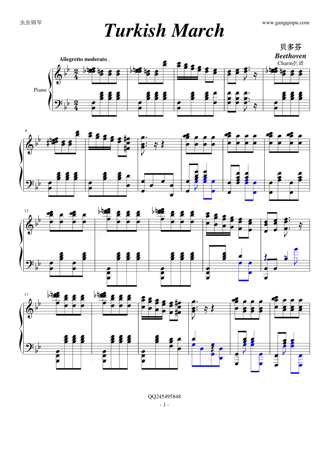 钢琴谱:土耳其进行曲(老贝原版)