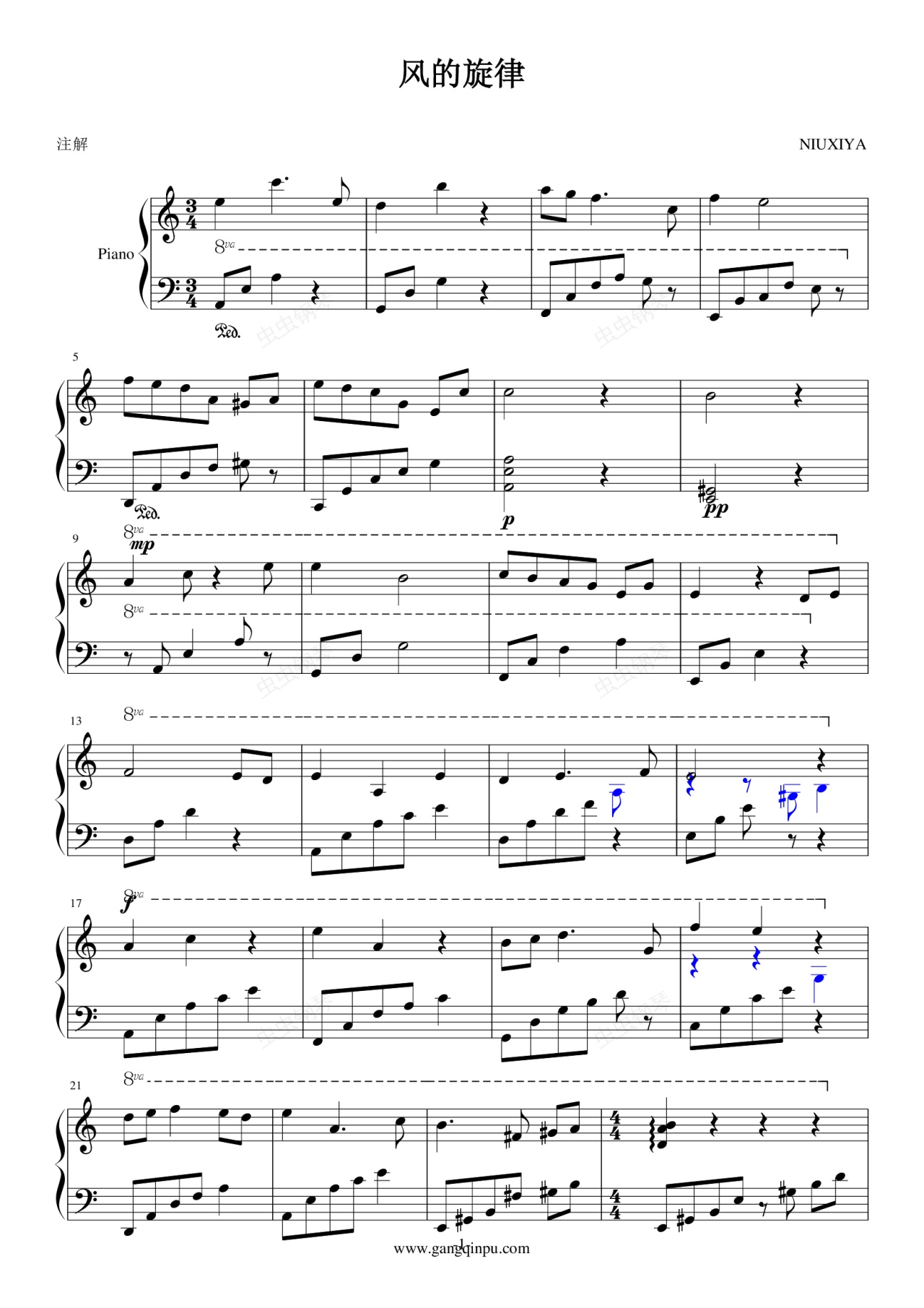 钢琴谱:风的旋律