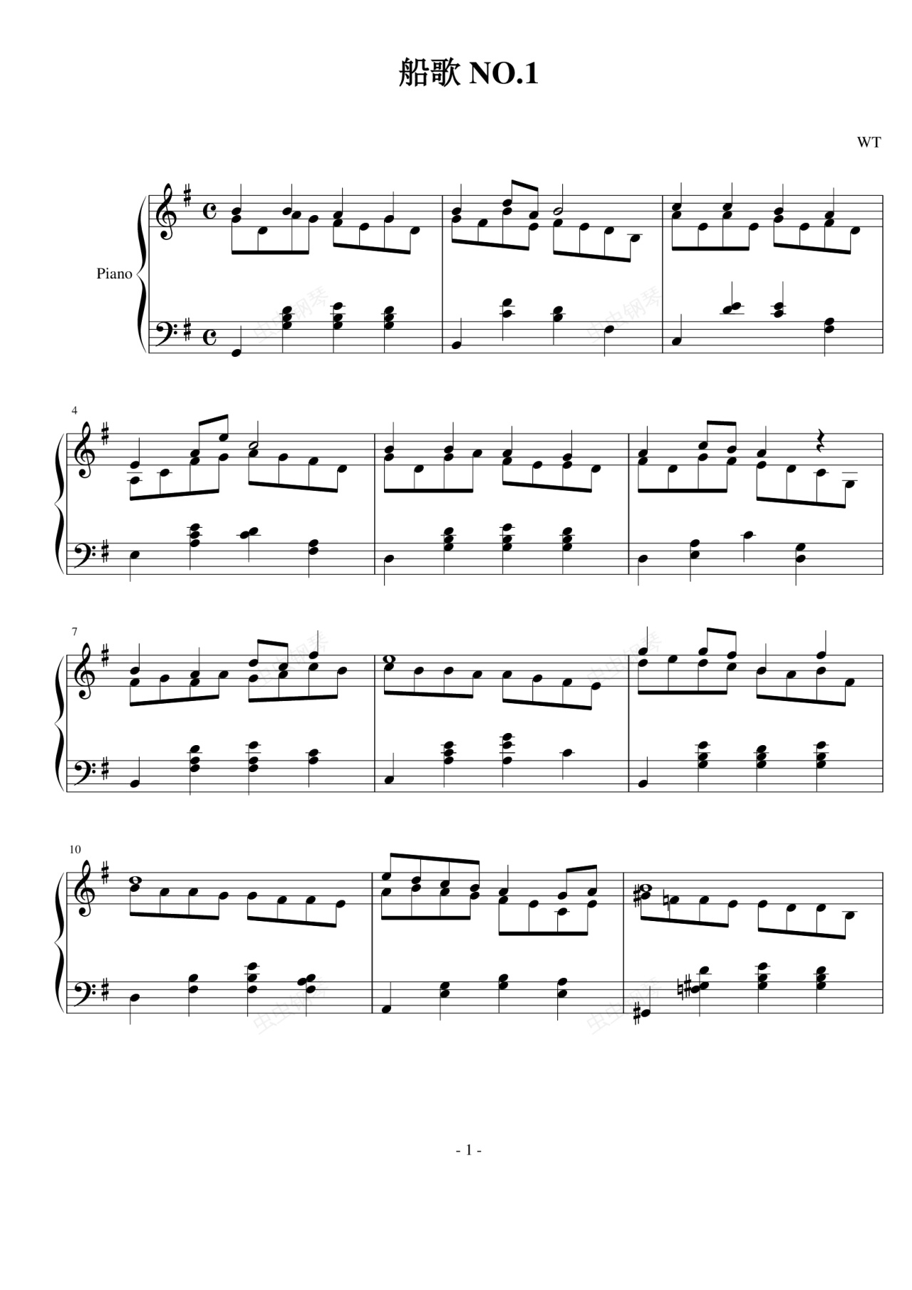 ,真的是船歌,在好天气下划船.. 比较简陋,演奏记号和速度都没有..赶时间啊,还有5分钟就上课啦!狂奔!~!~
