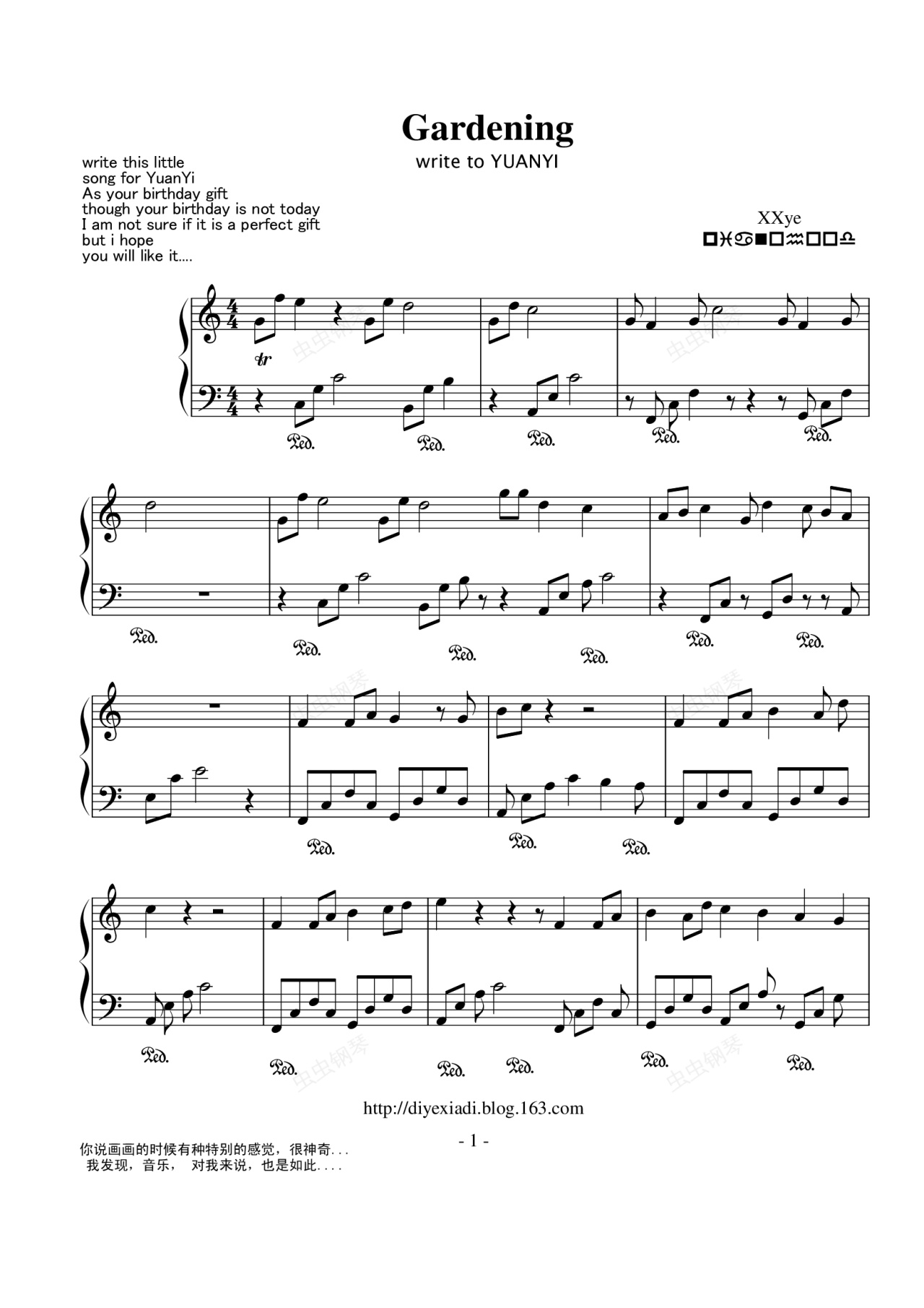钢琴谱:Gardening
