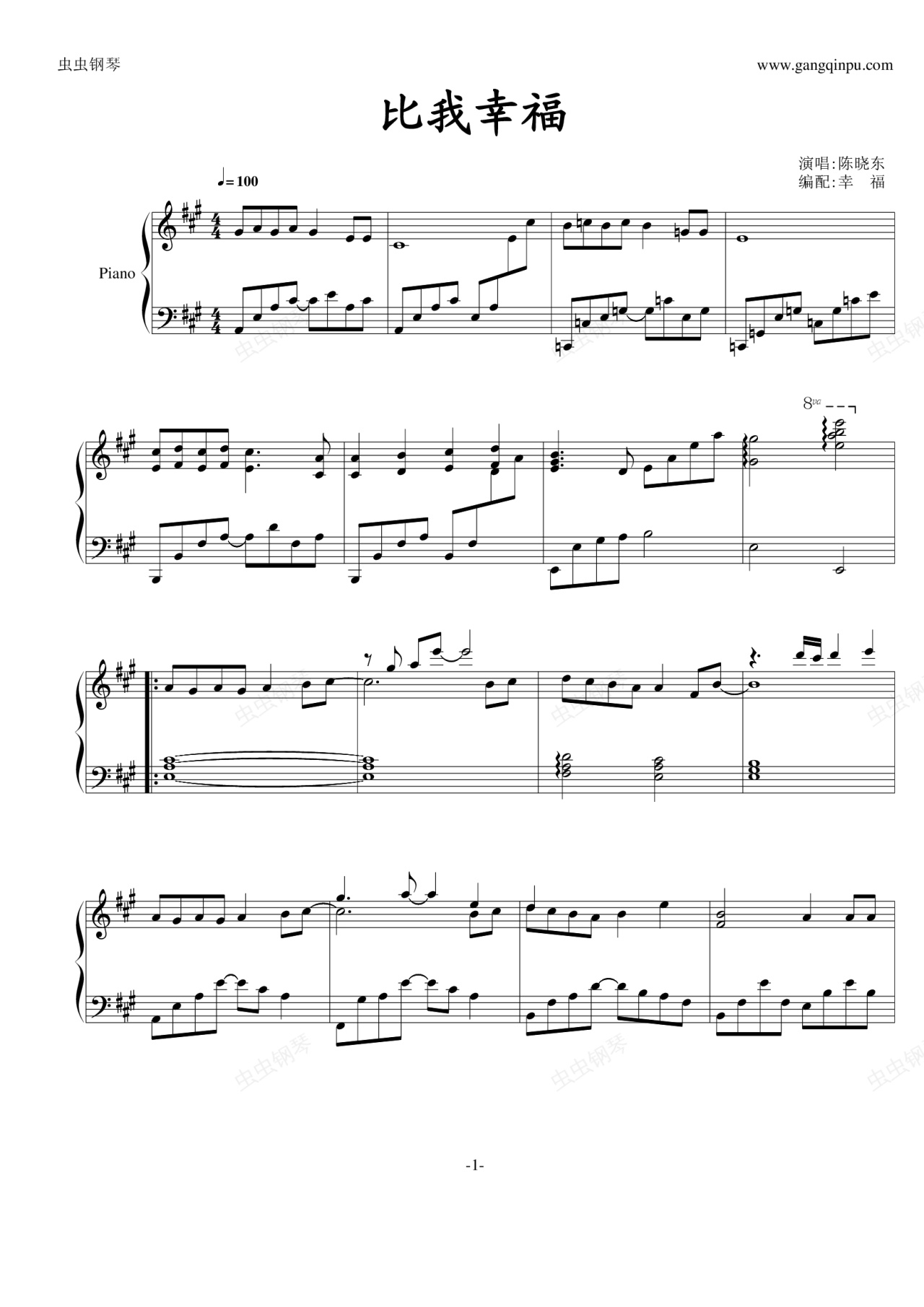 钢琴谱:比我幸福
