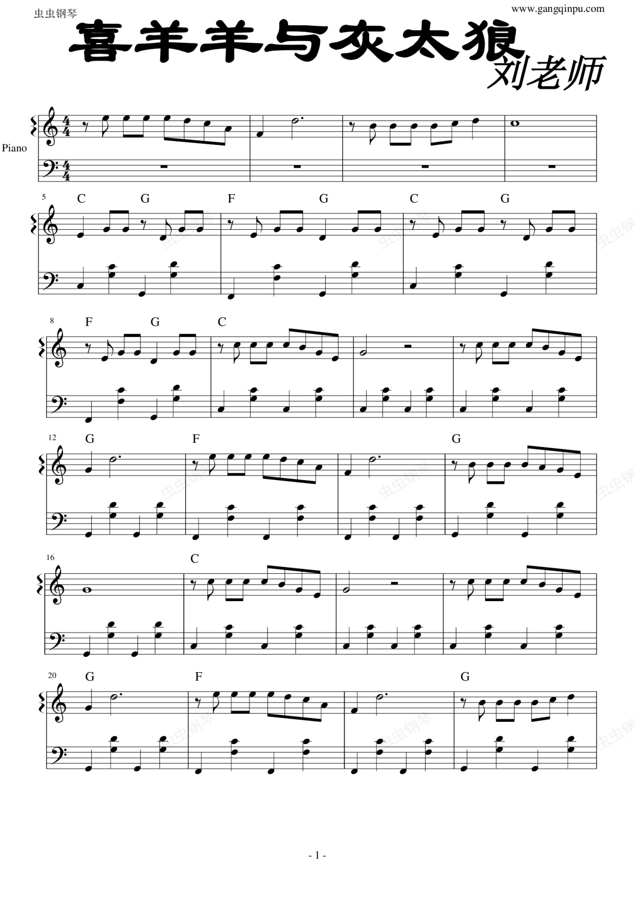 钢琴谱:喜羊羊与灰太狼