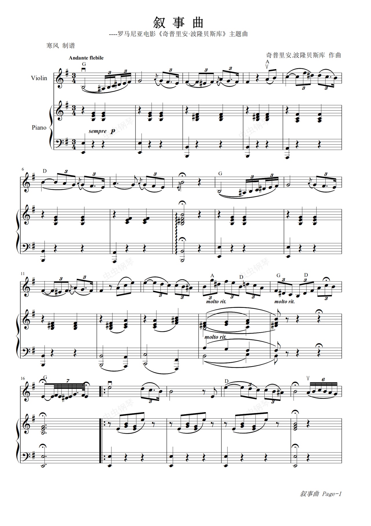 钢琴谱:奇普里安.波隆贝斯库-叙事曲