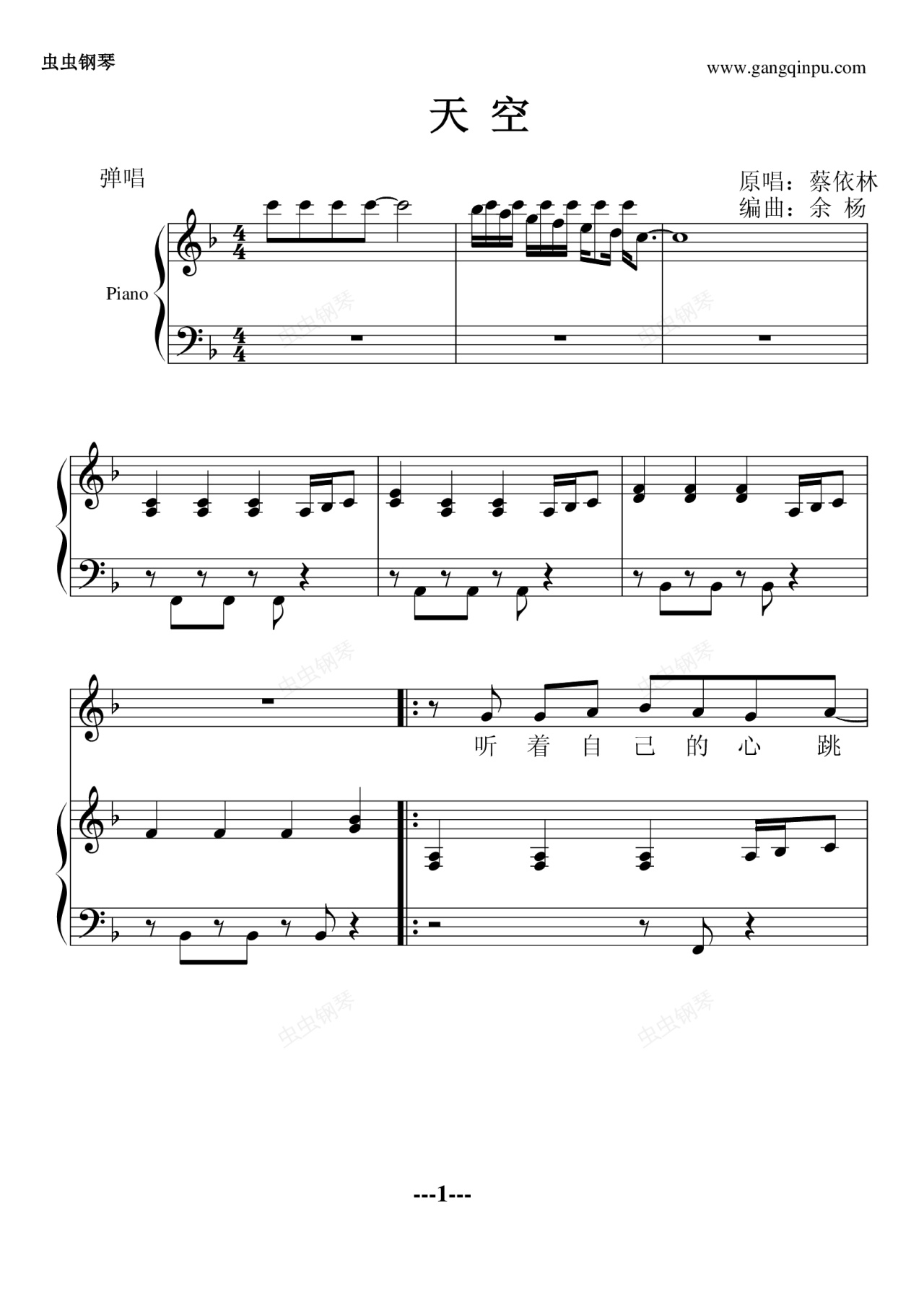 钢琴谱:天空---诗人