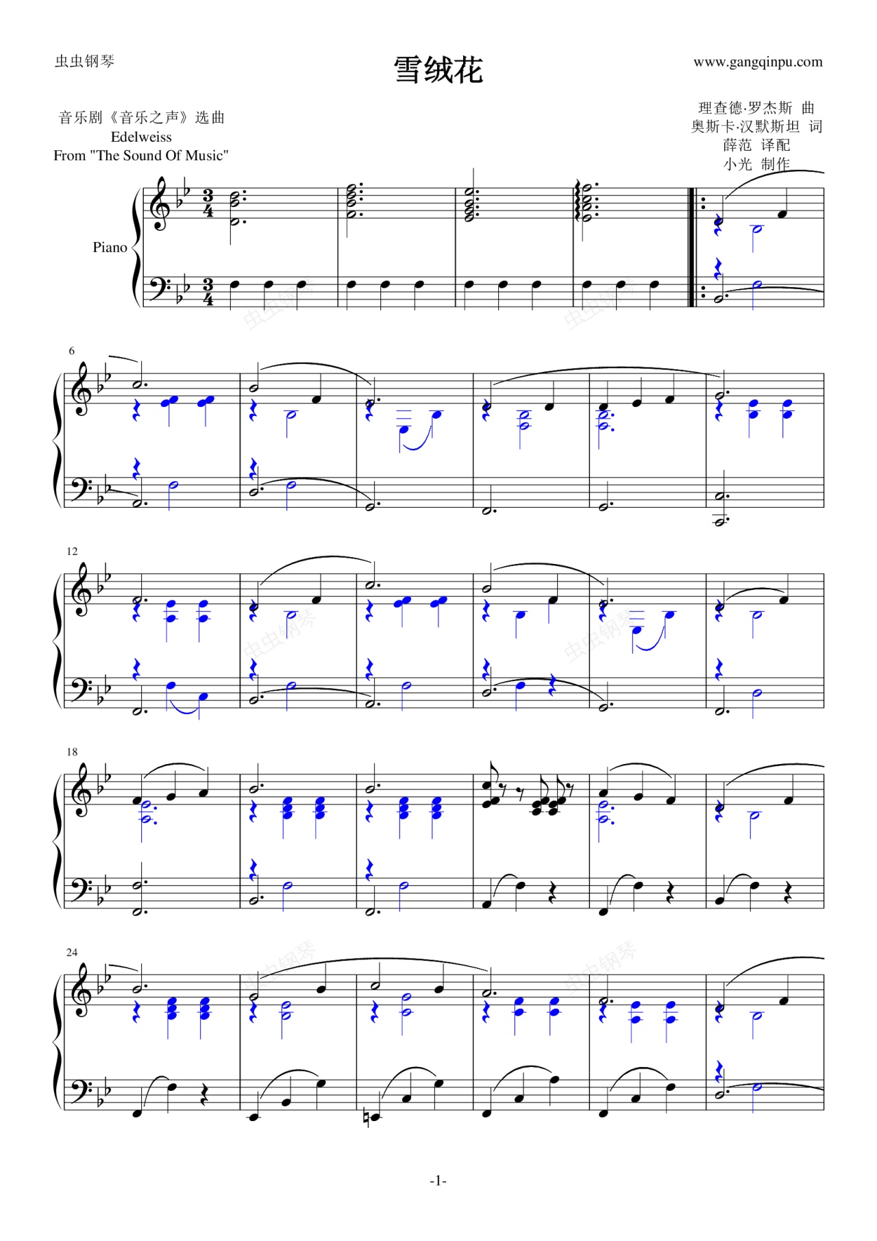 一直很喜欢的曲子。记得以前弹电子琴的时候,用它来入门的,和弦就C,F,G。直到最近唱雪绒花的和声,才发现,原来同一首简单的曲子,配上复杂的和弦,居然也可以有那么大的变化~~呵呵。 希望大家喜欢~~