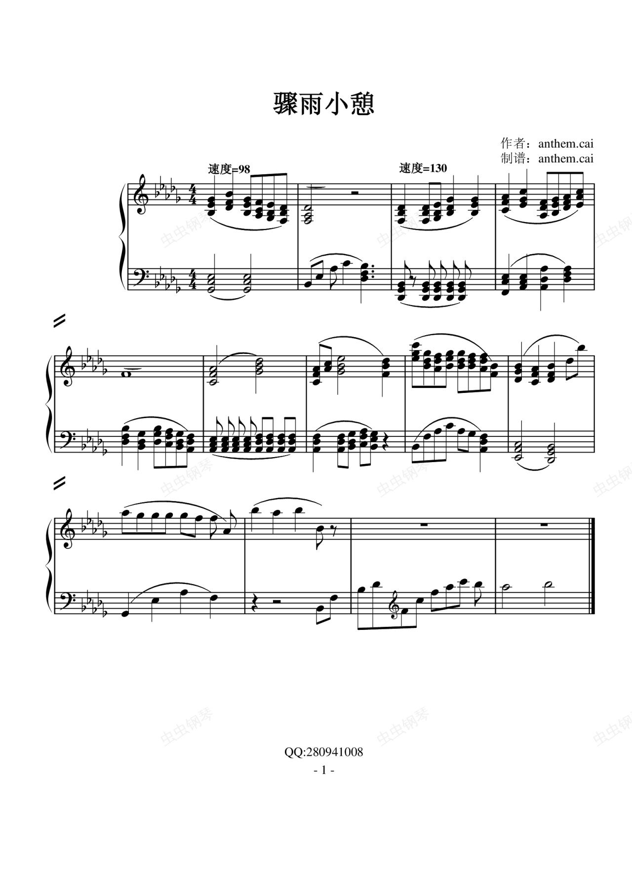 您的位置: 首页 > 钢琴谱库 > 骤雨小憩