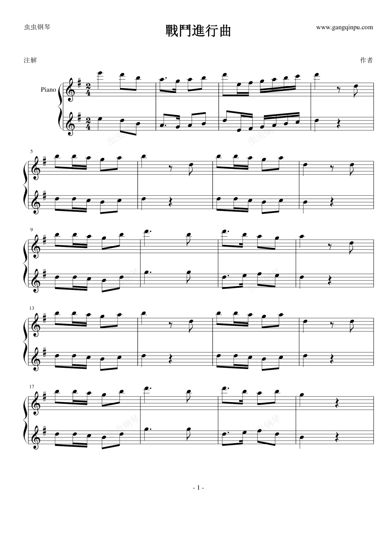 钢琴谱:戰鬥進行曲