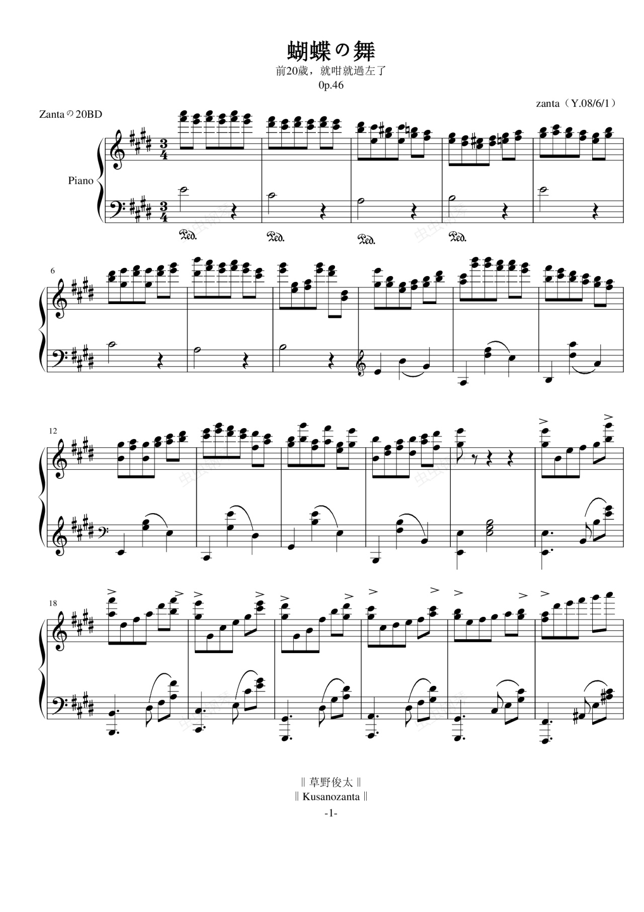 钢琴谱:蝴蝶の舞