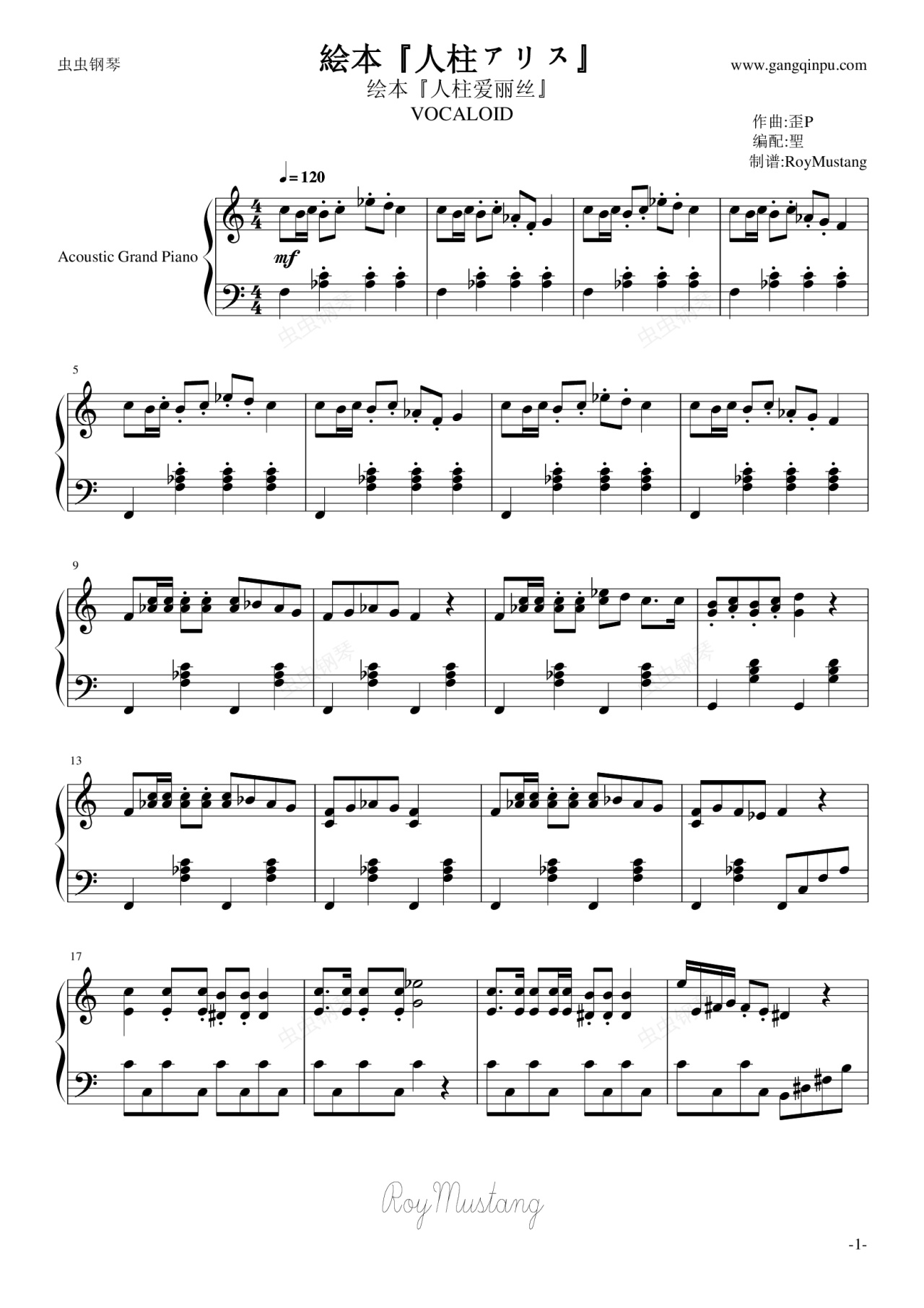 钢琴谱:絵本『人柱アリス』(Vocaloid家族)