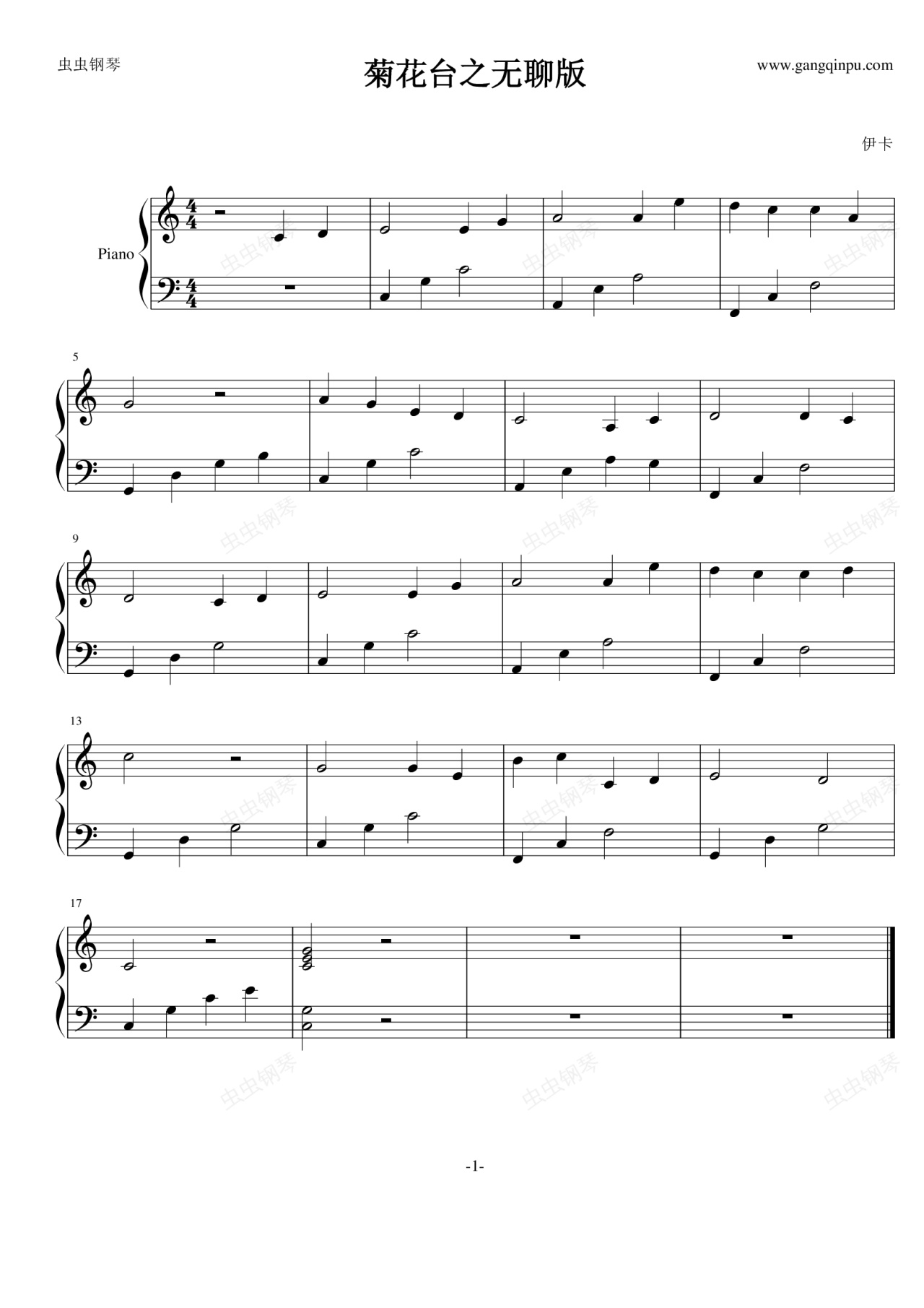 钢琴谱:菊花台之无聊版