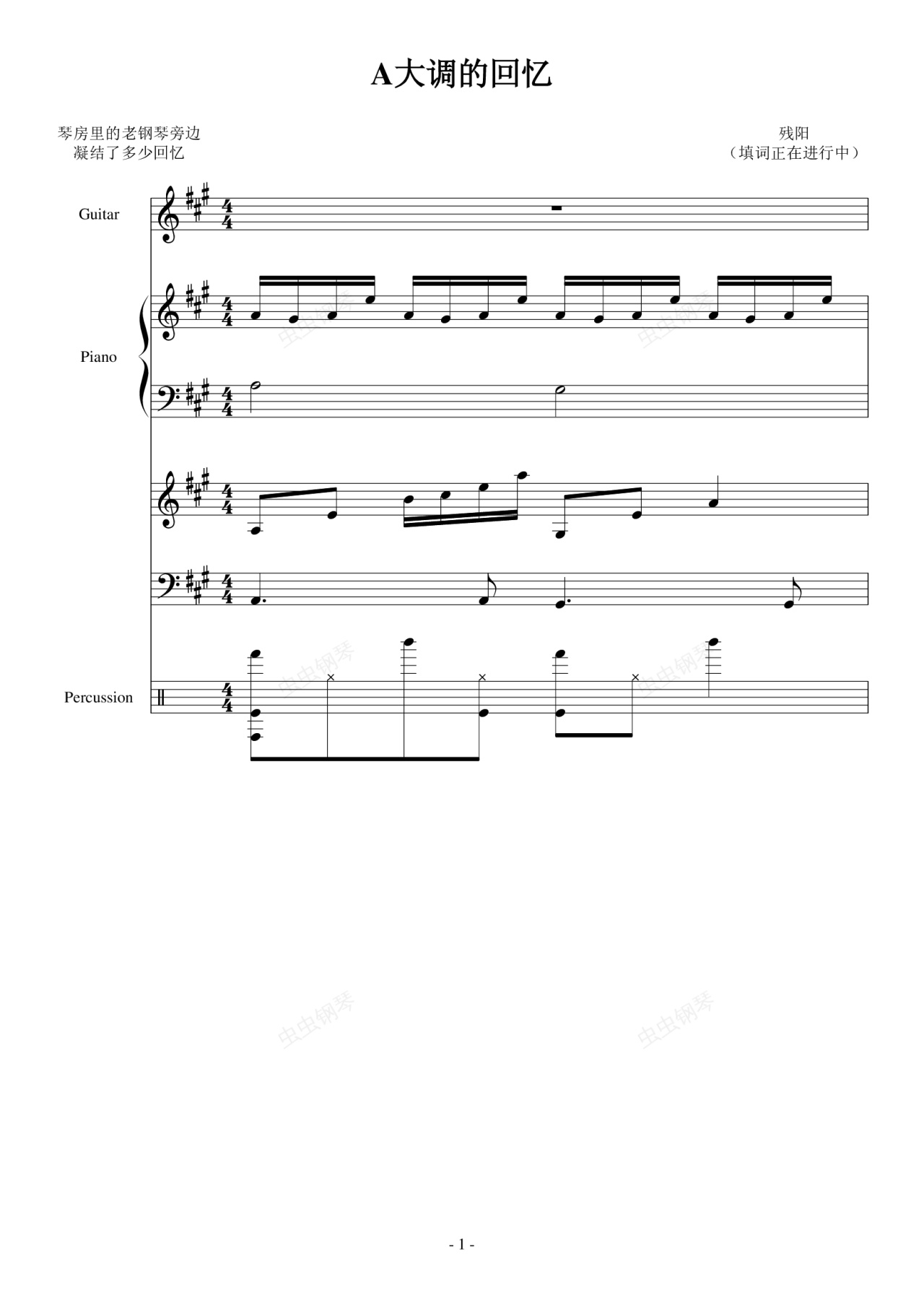 钢琴谱:A大调的回忆