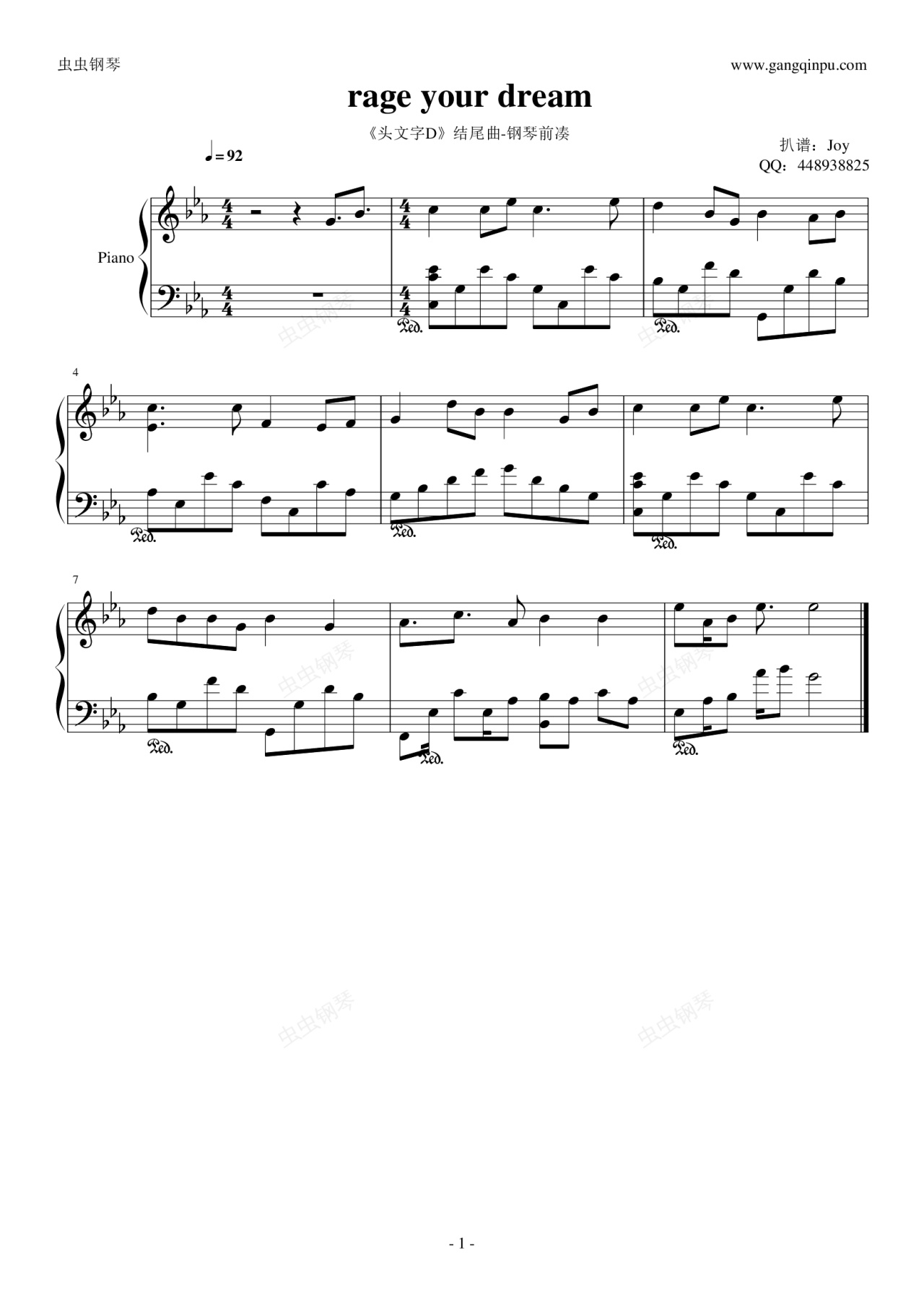 钢琴谱:rage your dream 《头文字D》结尾曲
