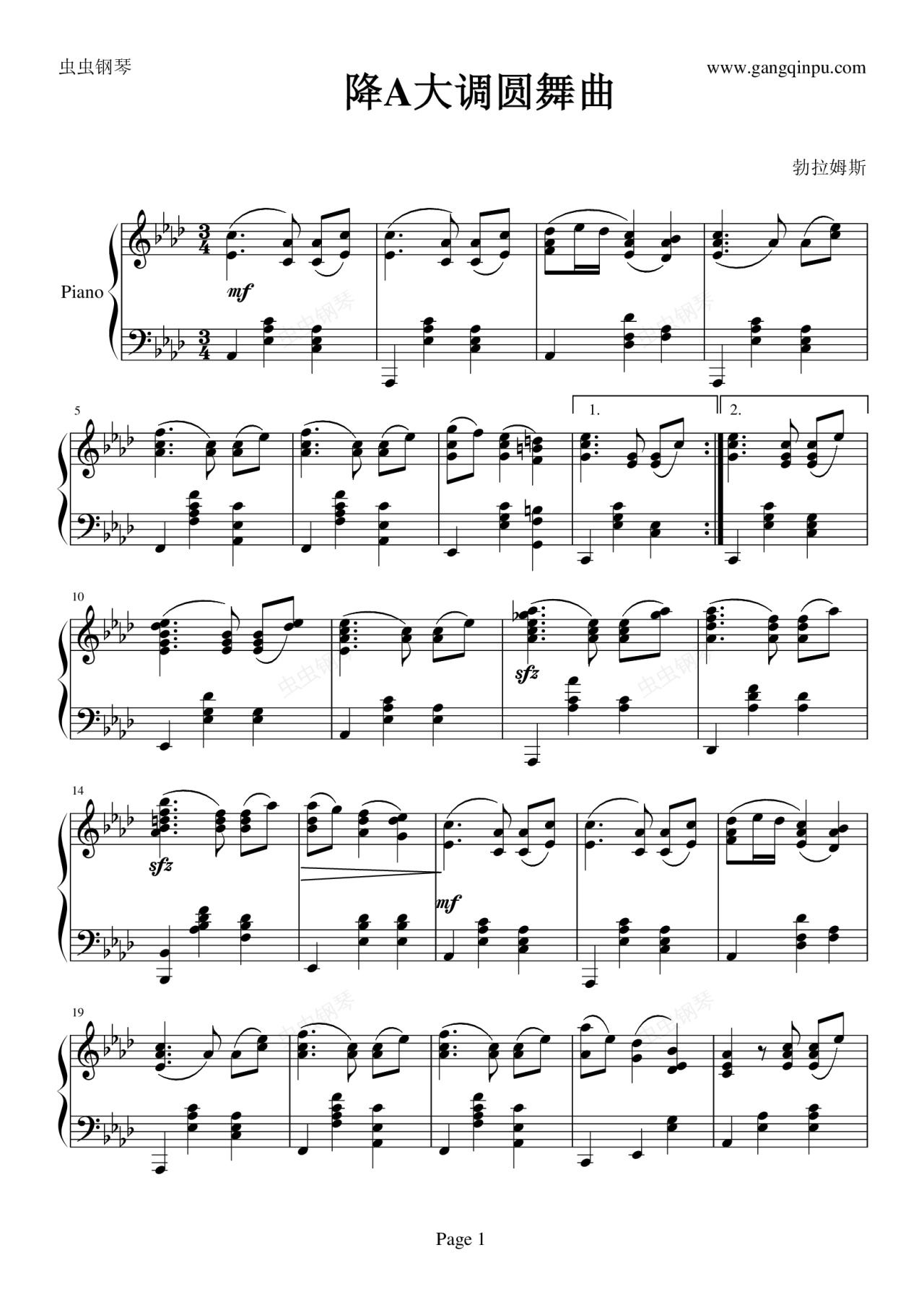 钢琴谱:降A大调圆舞曲Op39NO.15