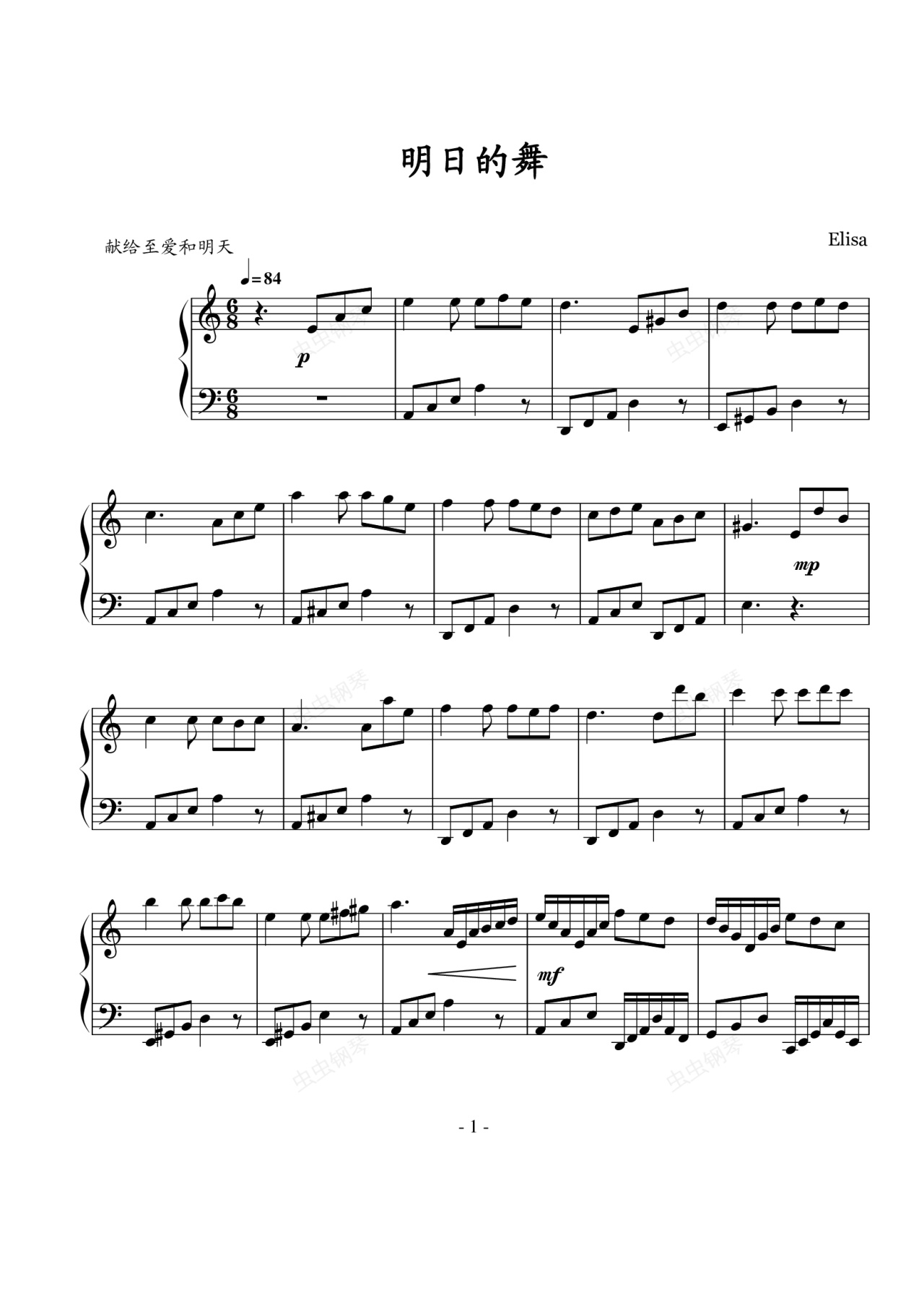 钢琴谱:明日的舞