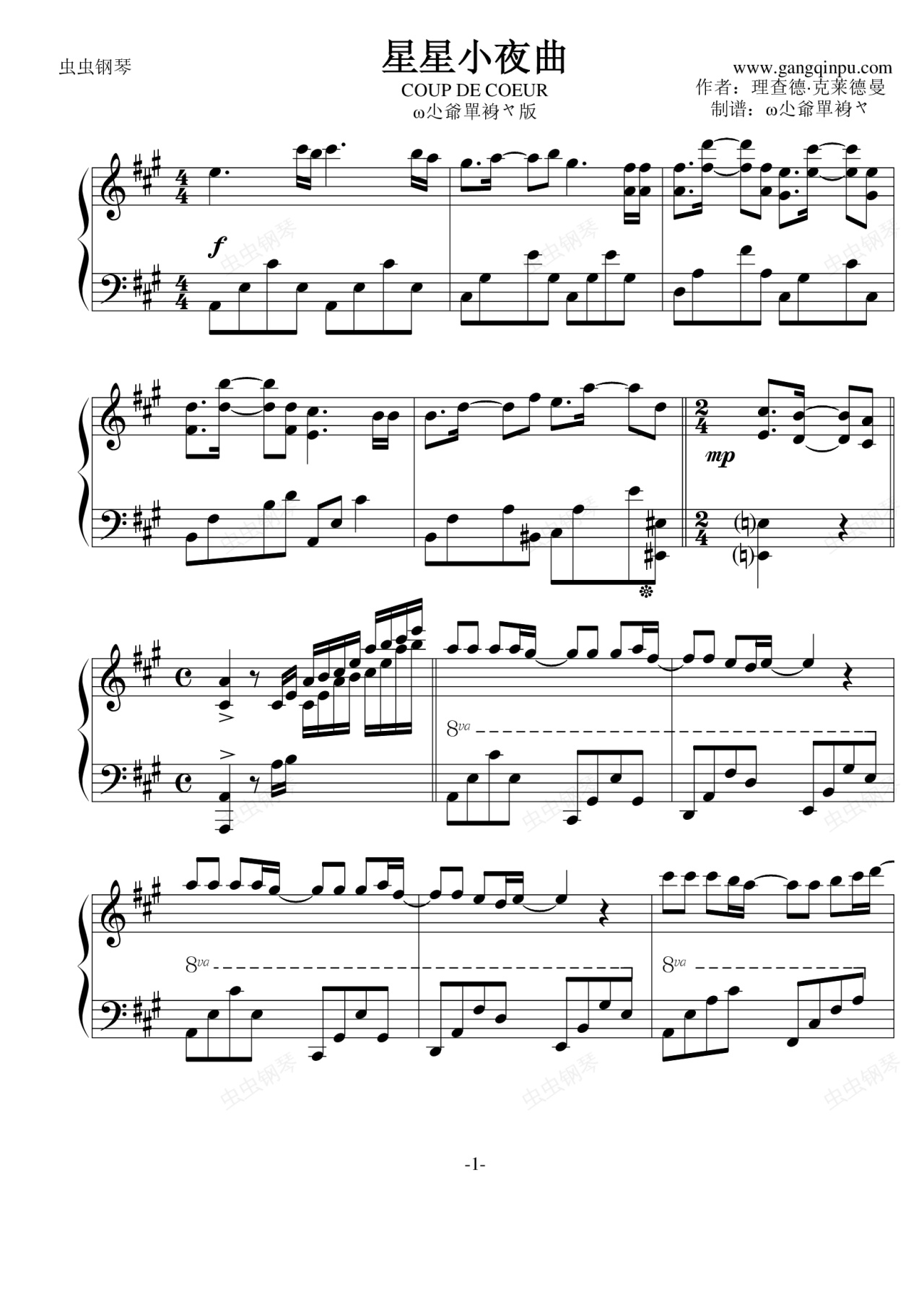 钢琴谱:星星小夜曲----ω尐爺單裑ヤ版