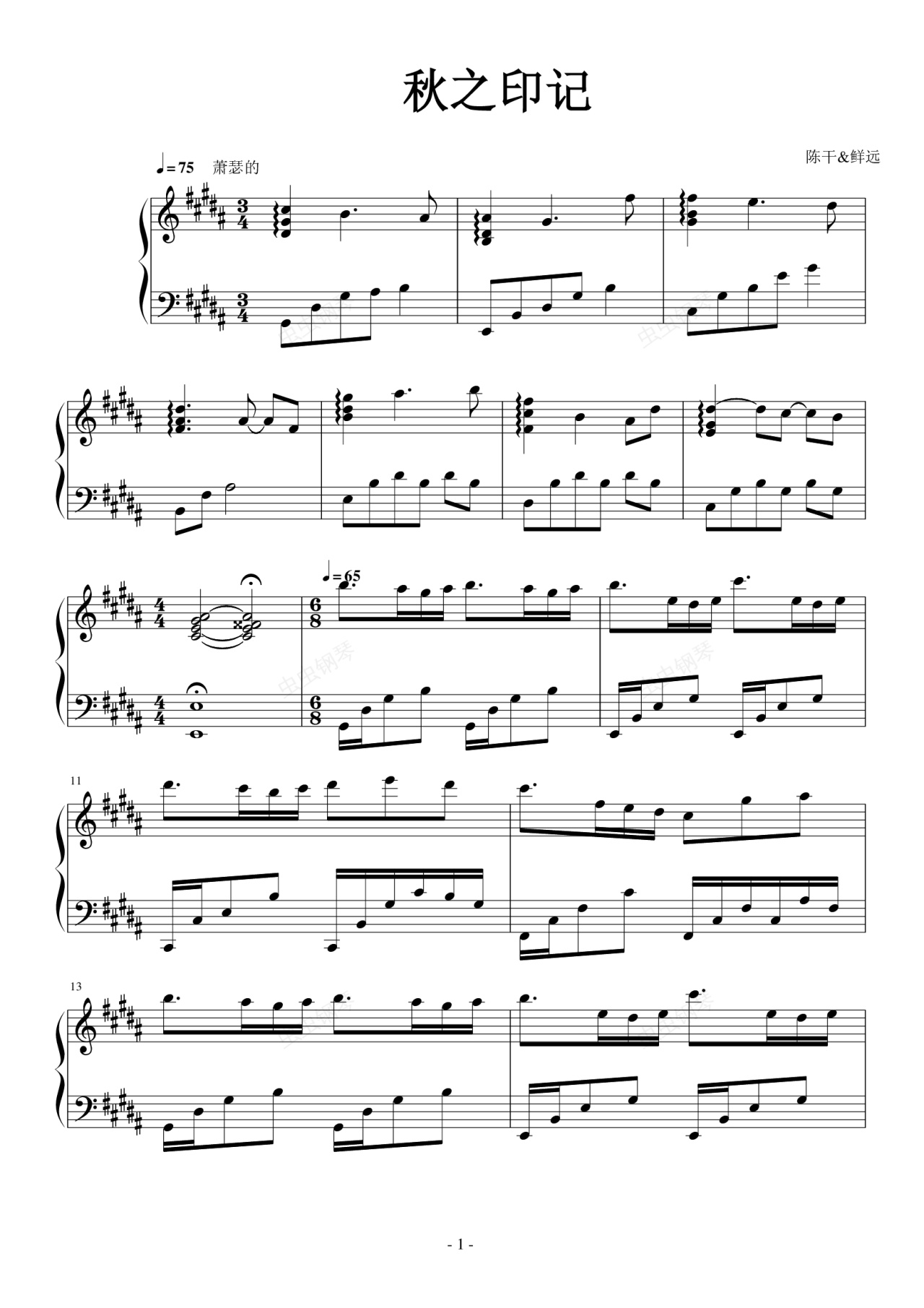 钢琴谱:秋之印记