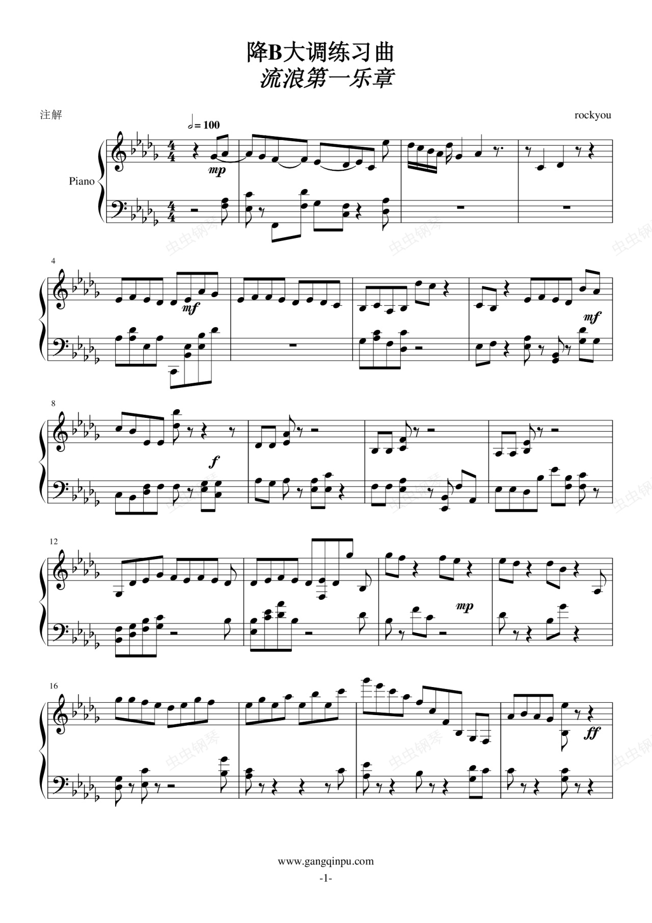 钢琴谱:降b小调练习曲 流浪第一乐章
