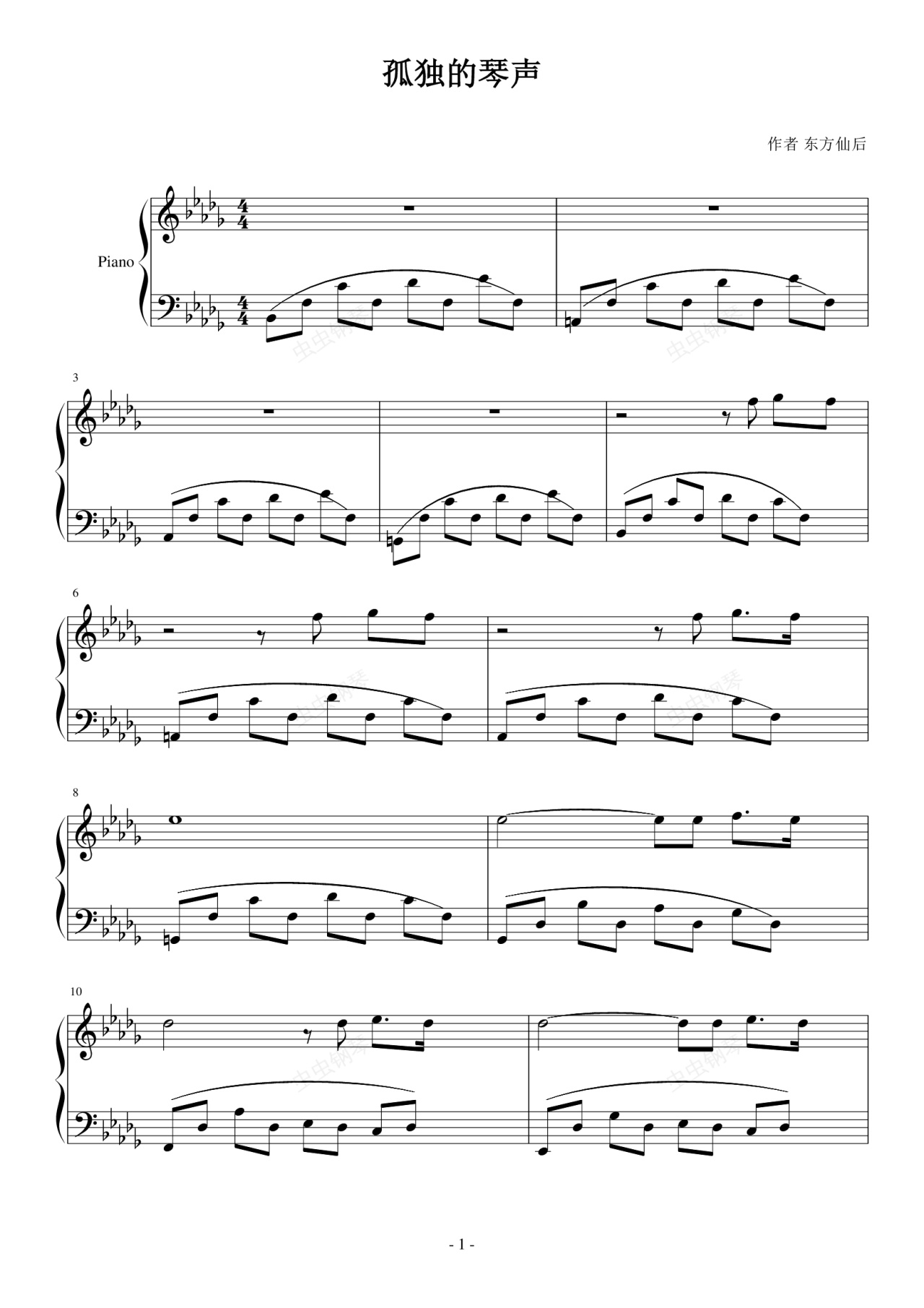 钢琴谱:孤独的琴声