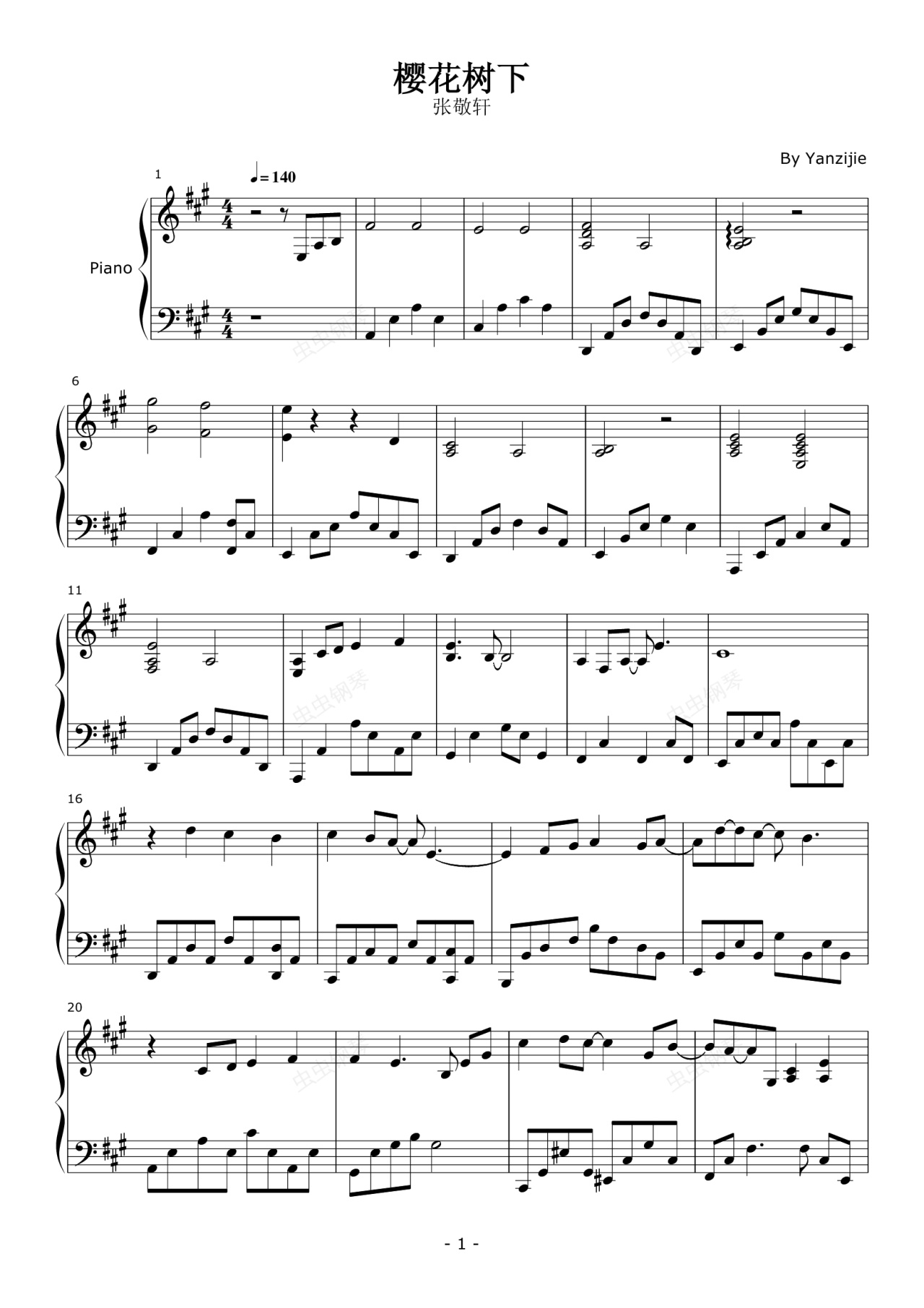 钢琴谱:樱花树下