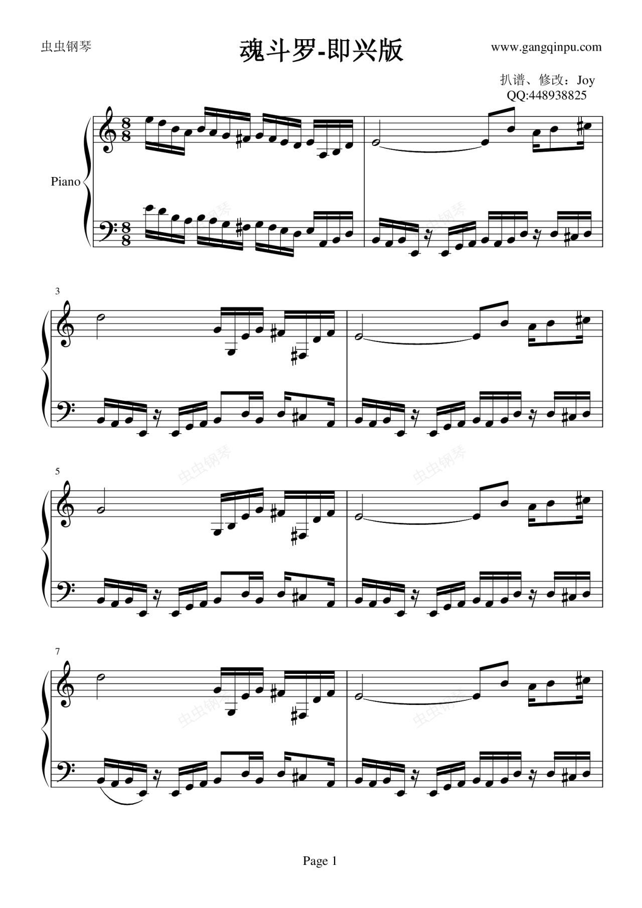 钢琴谱:魂斗罗-即兴版