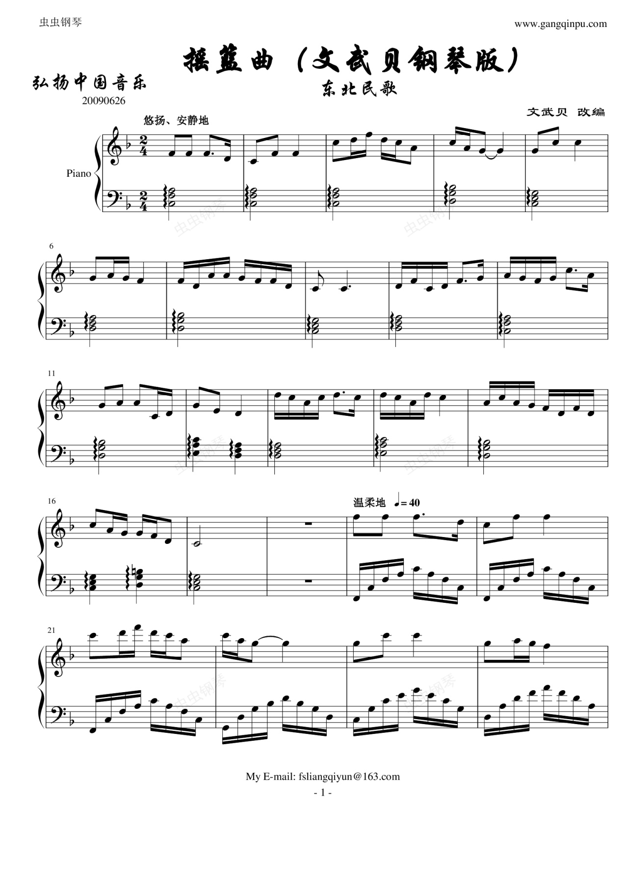 钢琴谱:摇篮曲(文武贝钢琴版)