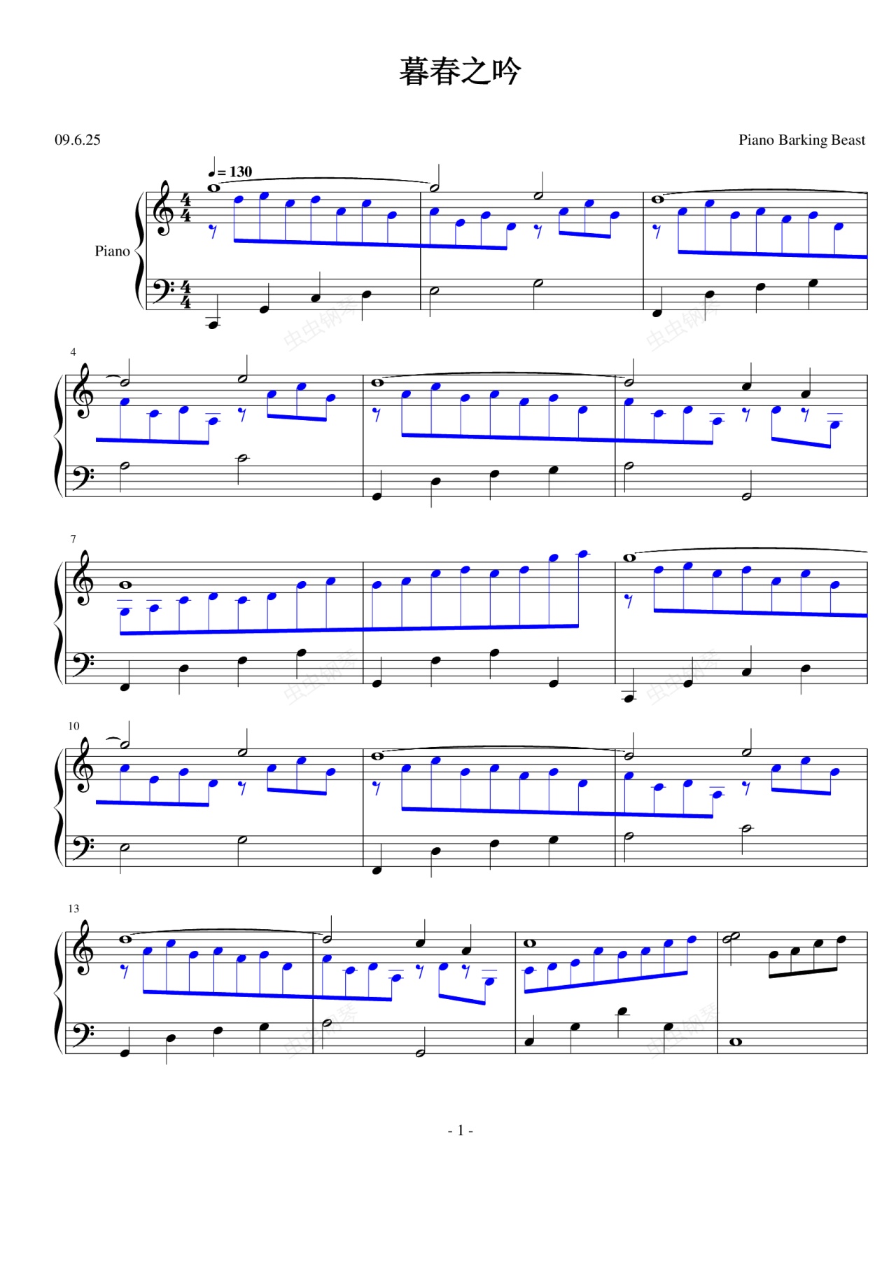 钢琴谱:暮春之吟