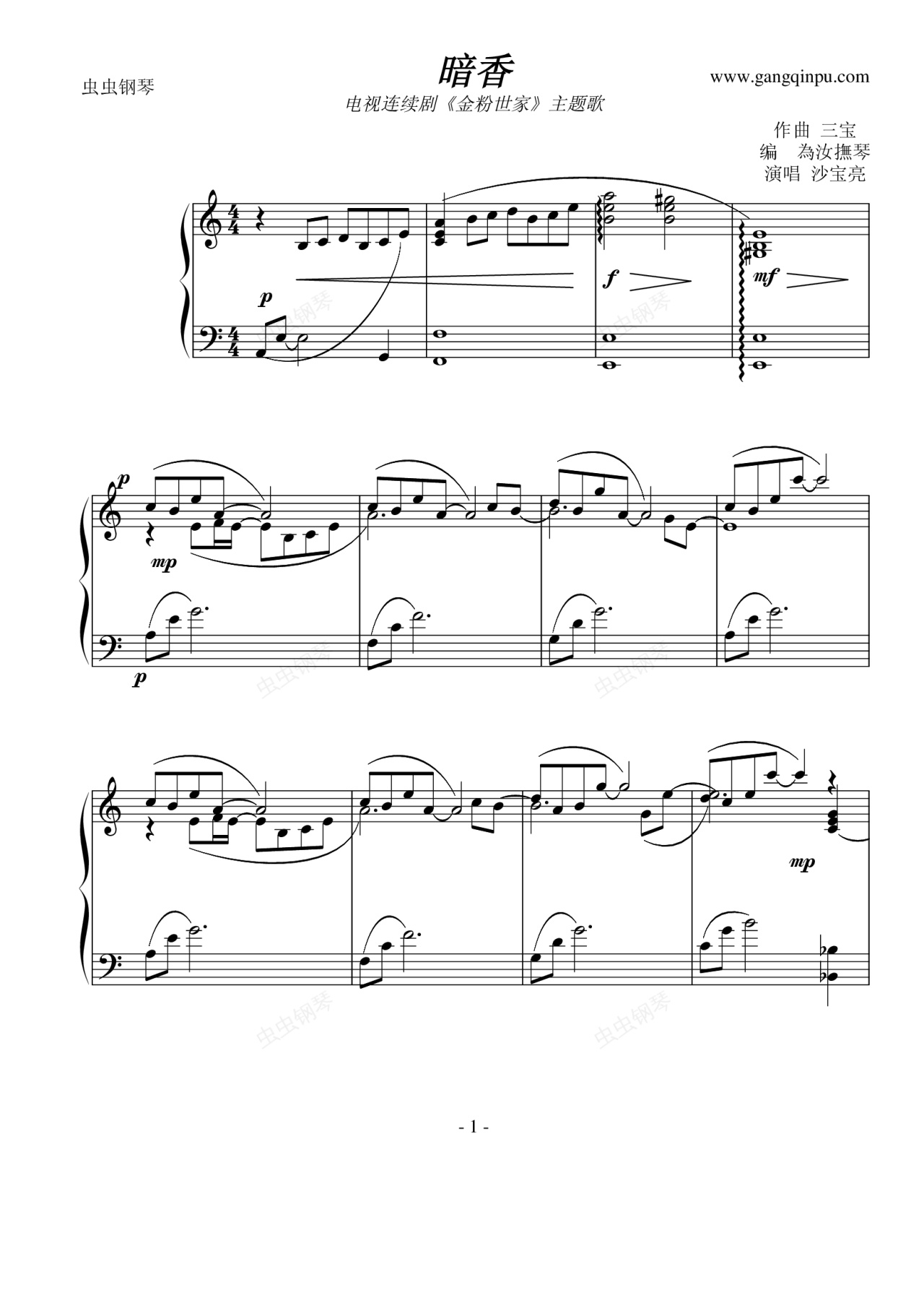 钢琴谱:暗香