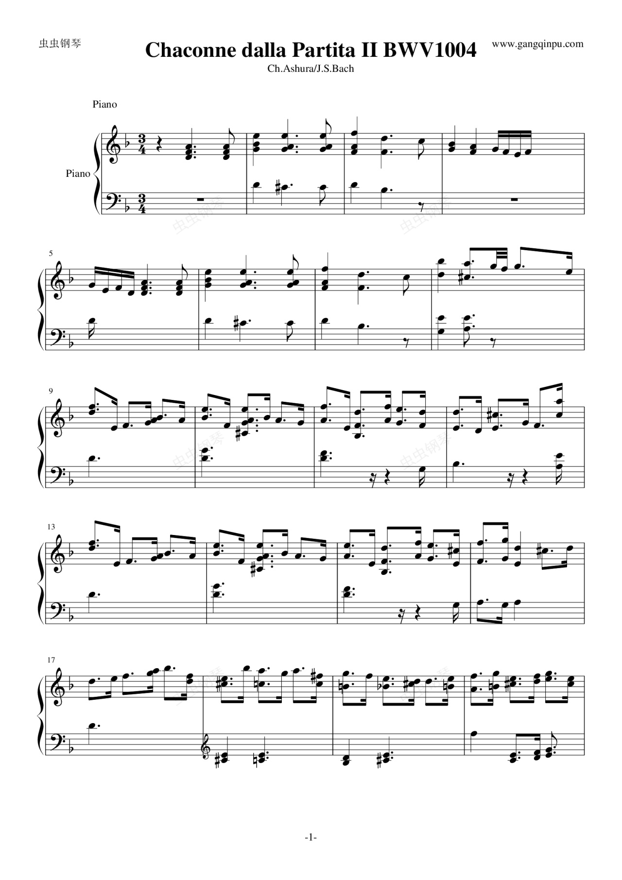 钢琴谱:巴赫神作BWV.1004Chaconne改编