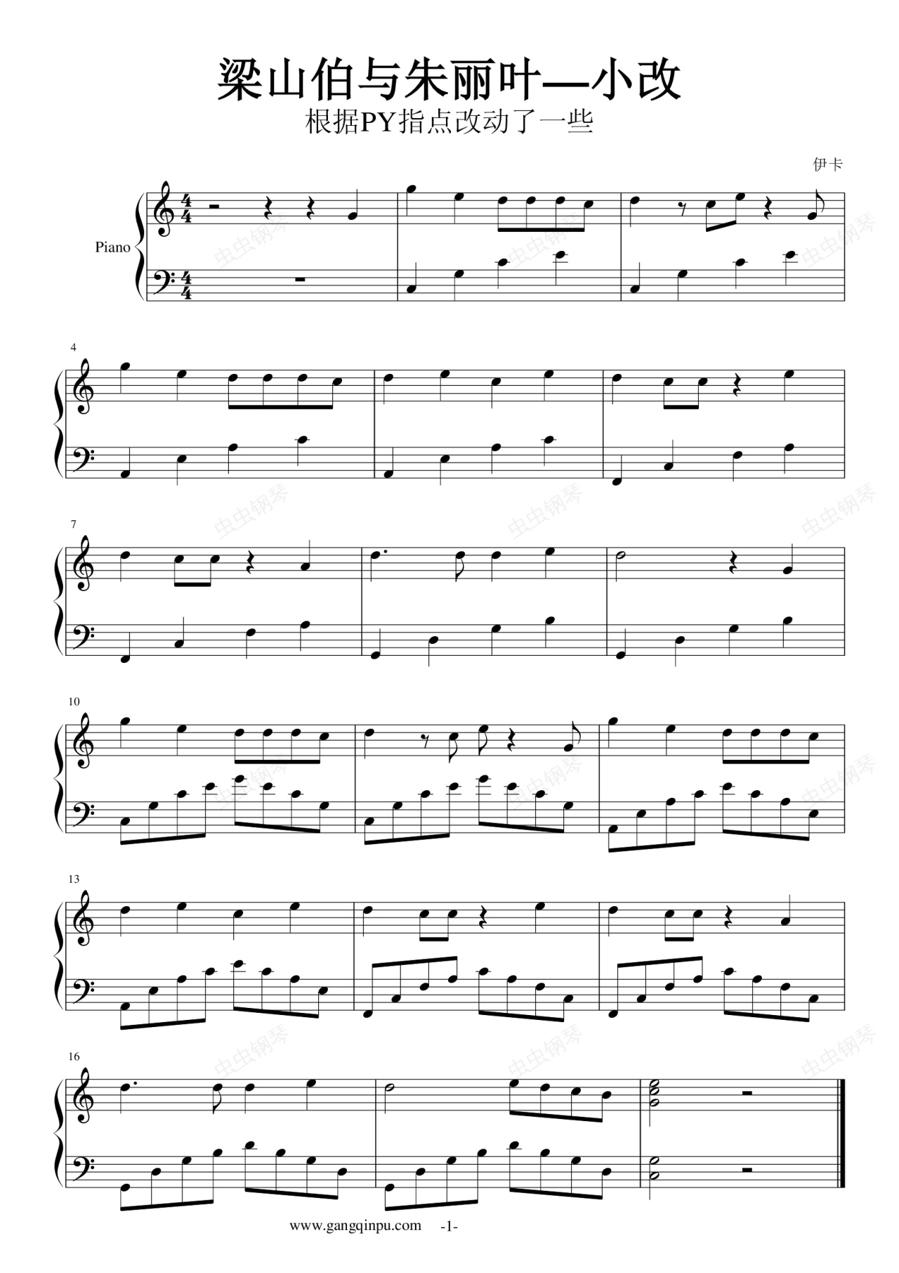 钢琴谱:梁山伯与朱丽叶—重改