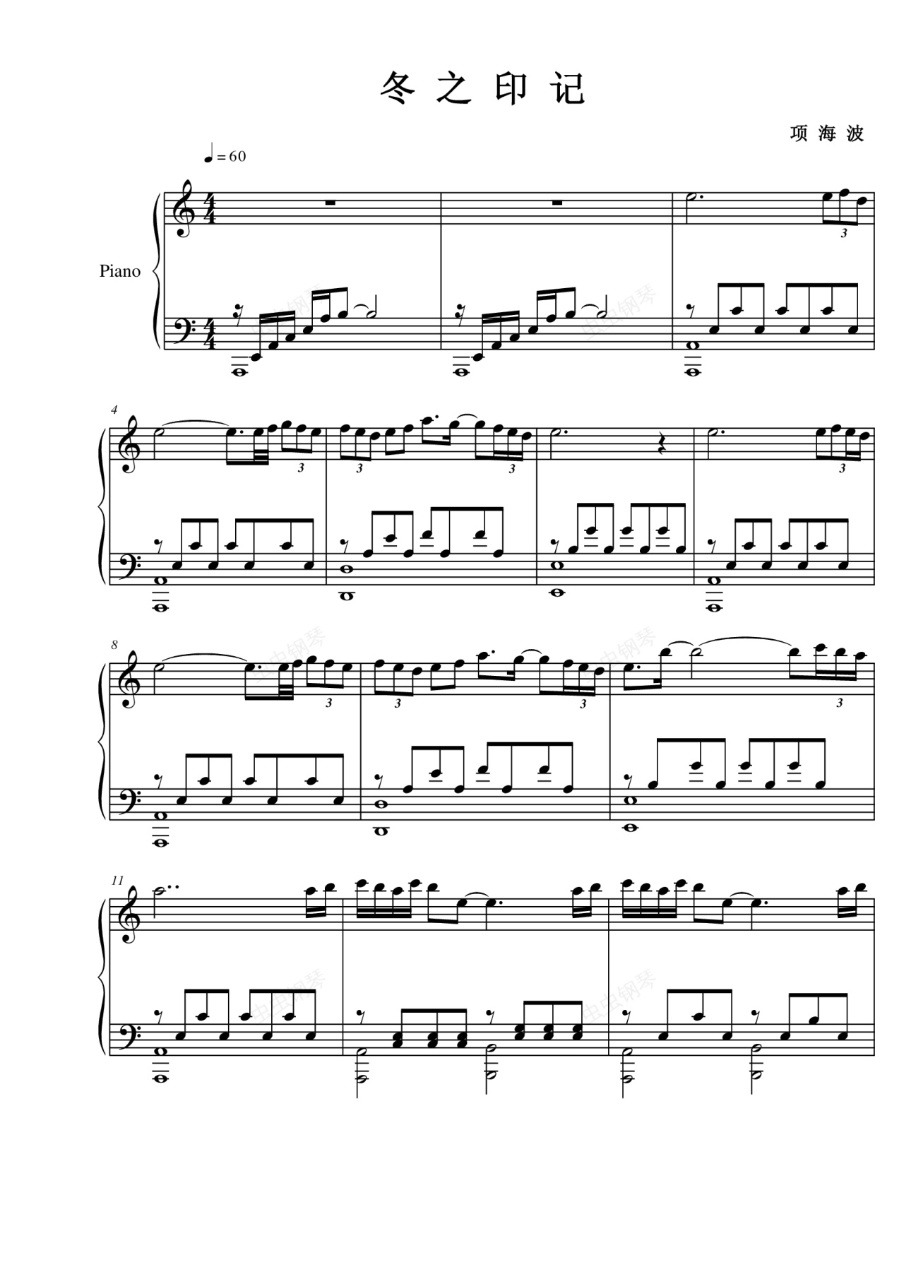 钢琴谱:冬之印记