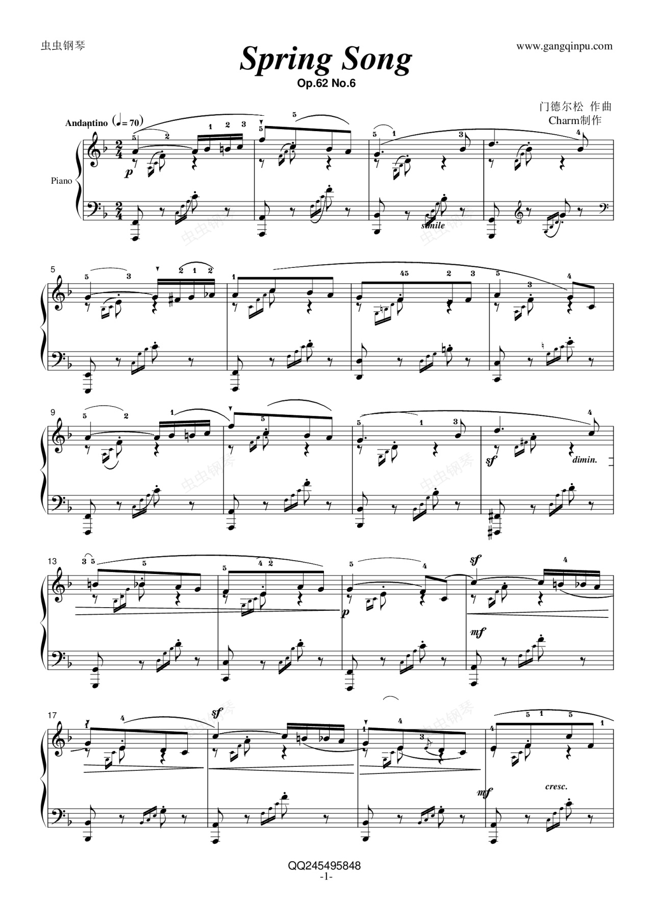 钢琴谱:春之歌
