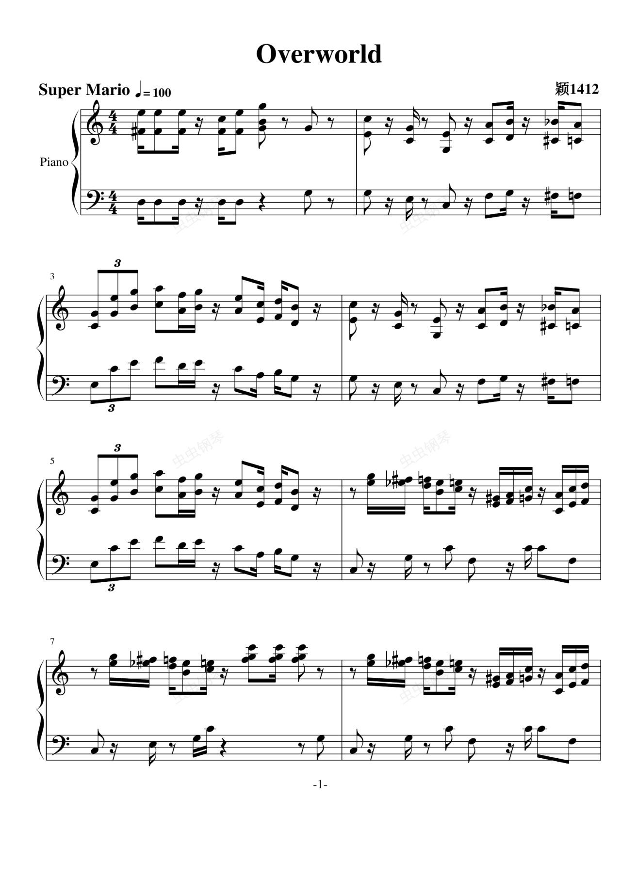 钢琴谱:Overworld-超级玛丽
